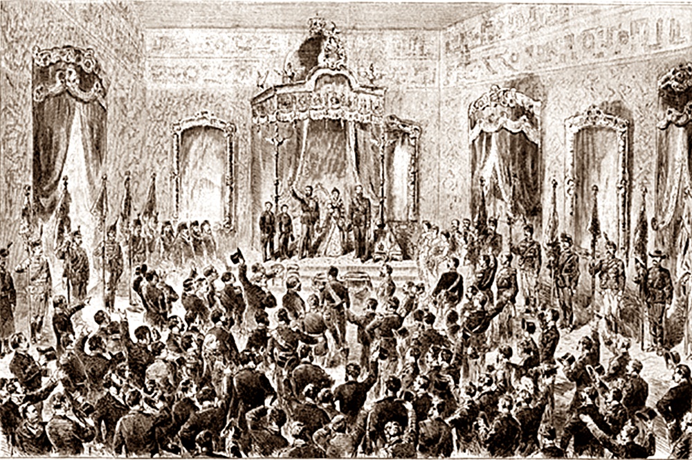 Prințul Carol de Hohenzollern-Sigmaringen a depus în ziua de 10 mai 1866 jurământul în fața adunării reprezentative a Principatelor Române Unite.