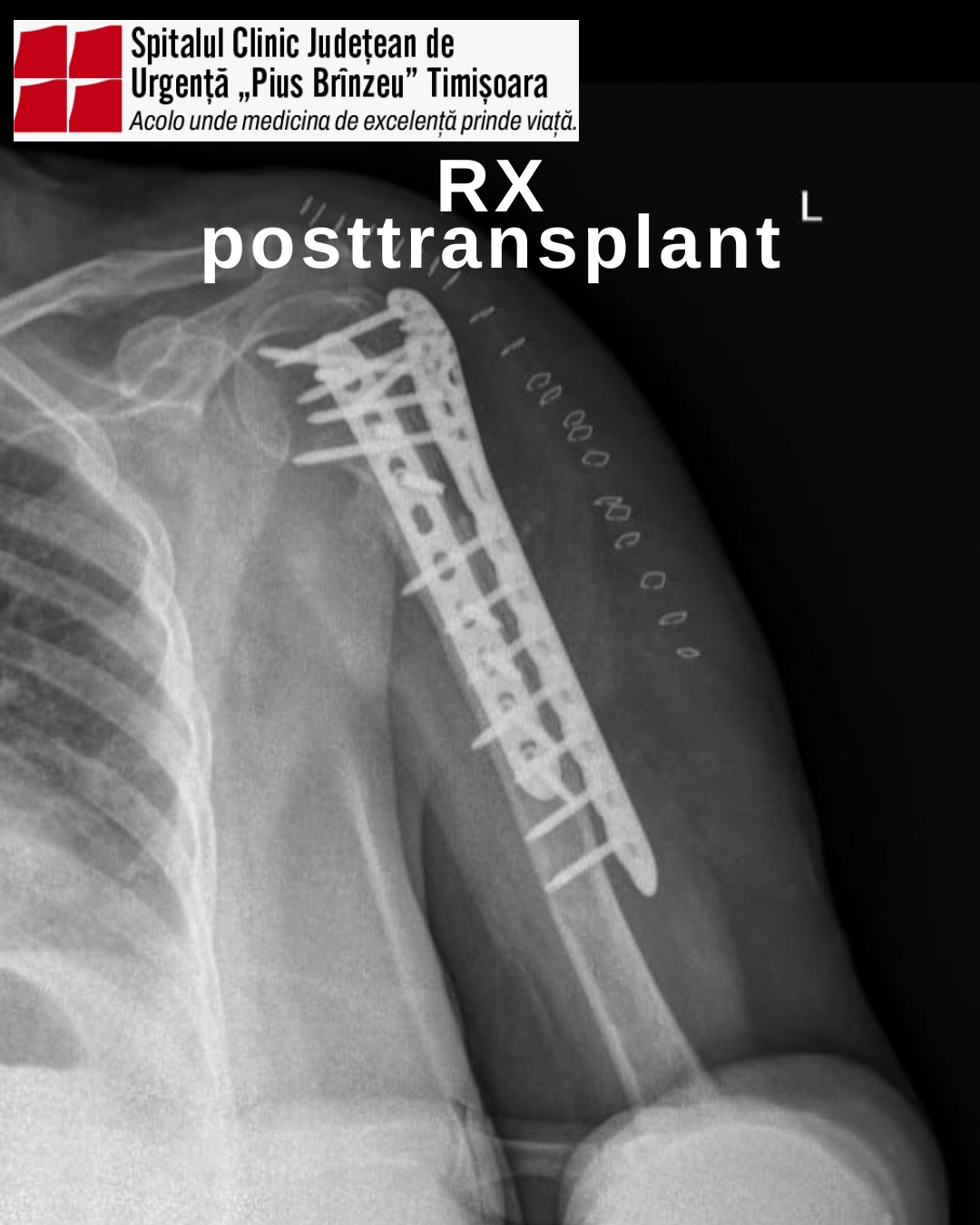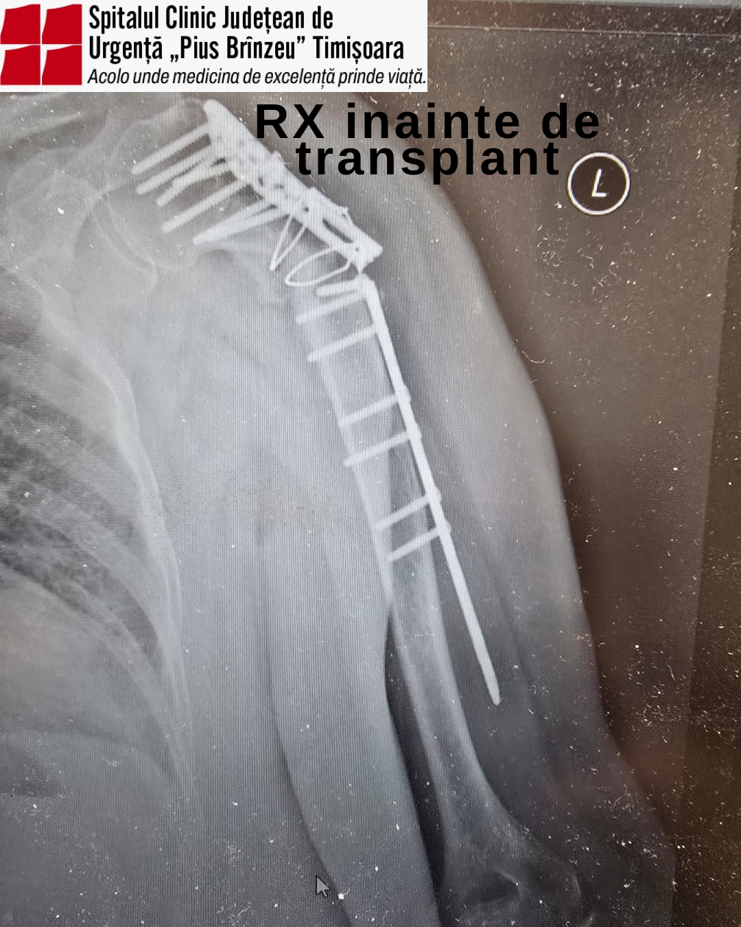 Intervenția chirurgicală a constat în cura chirurgicală a unei fracturi iterative de humerus proximal, asociată cu defect osos semnificativ și degradarea materialului de fixare utilizat la intervenția chirurgicală inițială. Complexitatea cazului a impus adoptarea unei soluții terapeutice avansate, menită să ofere pacientei cele mai bune șanse de recuperare.