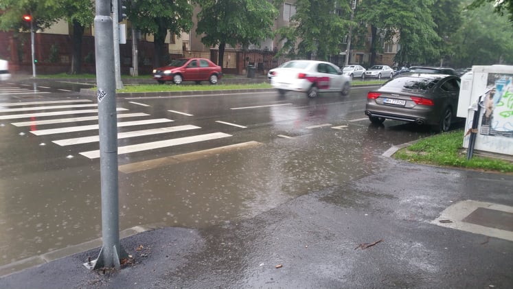 Traversarea unui bulevard proaspăt reabilitat la Timișoara se face prin… bălți! FOTO