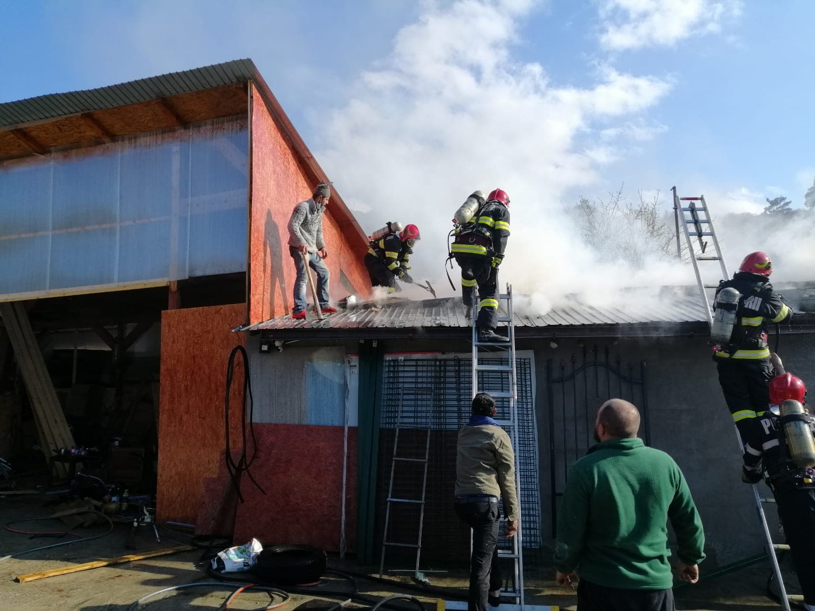 Cel de-al treilea incendiu a fost la acoperișul unui garaj al unui atelier de dezmembrări auto, pompierii militari salvând bunuri în valoare de aproximativ 12.000 lei, cauza izbucnirii focului fiind coșul de fum necurățat de funingine al sobei de incalzire.