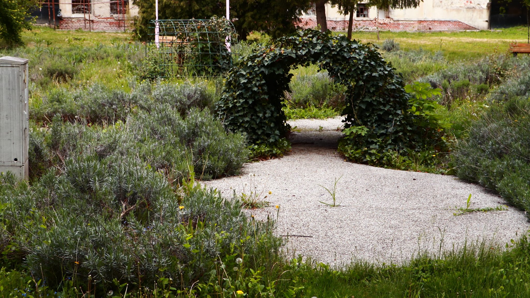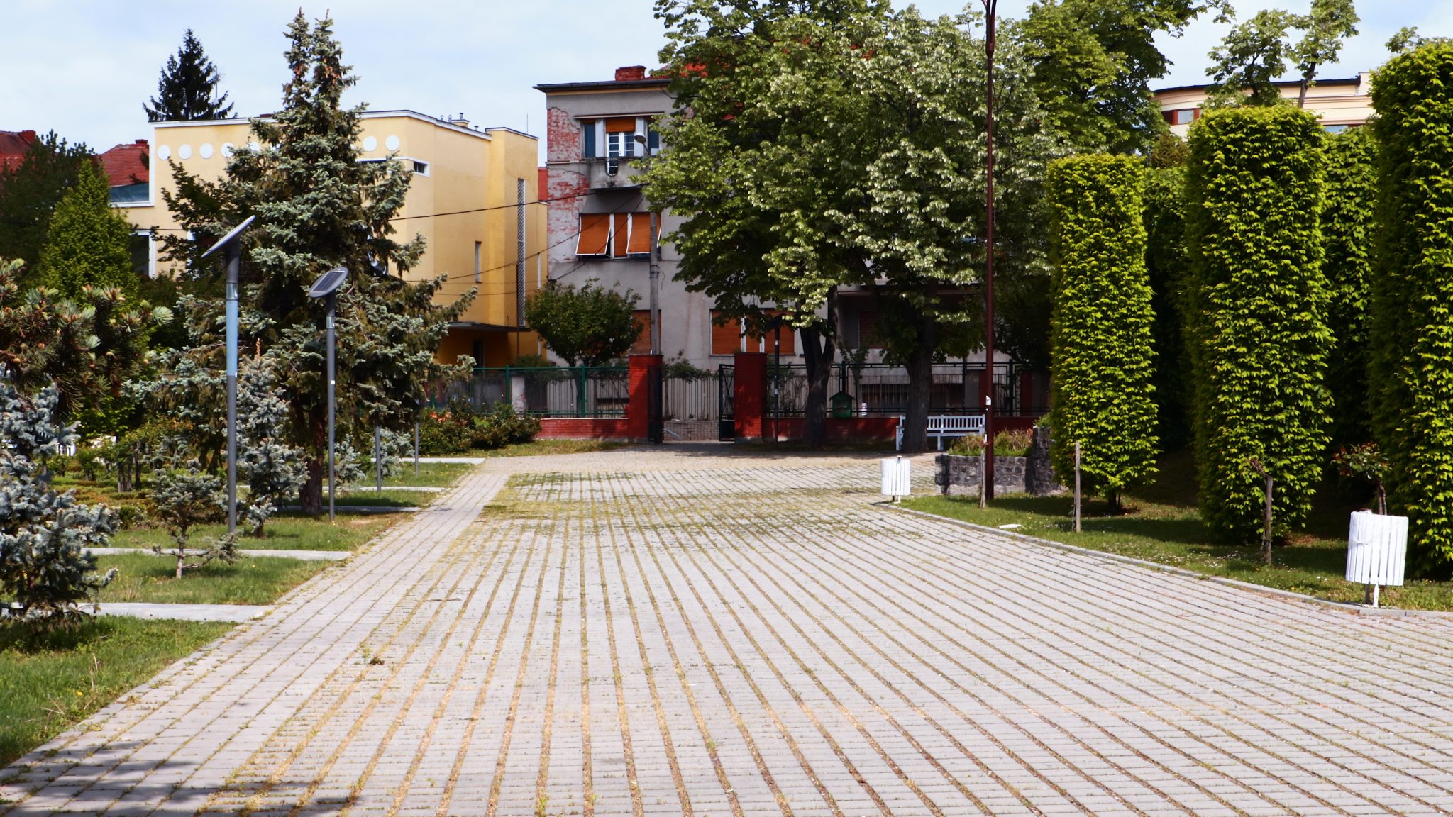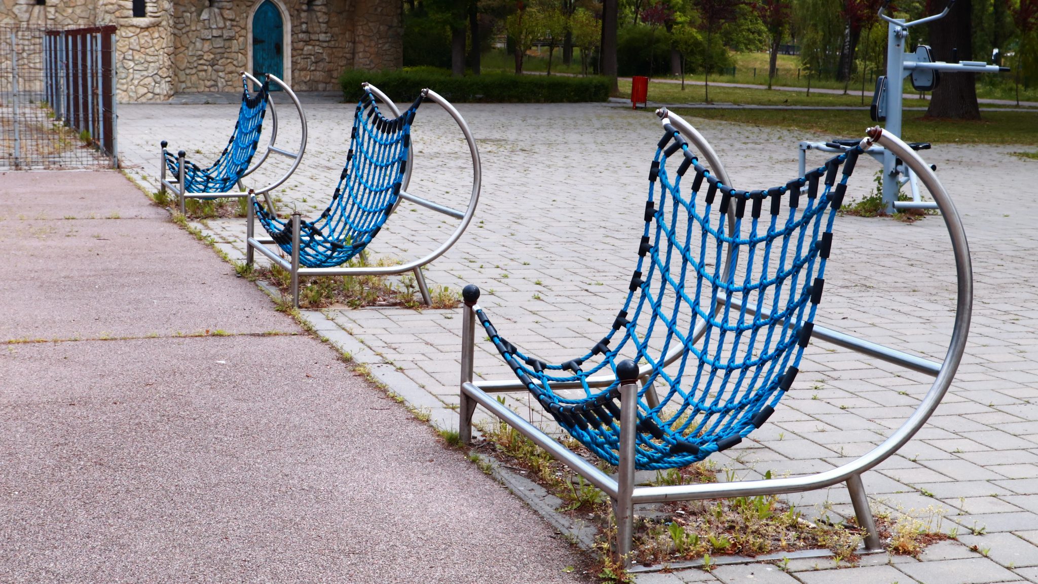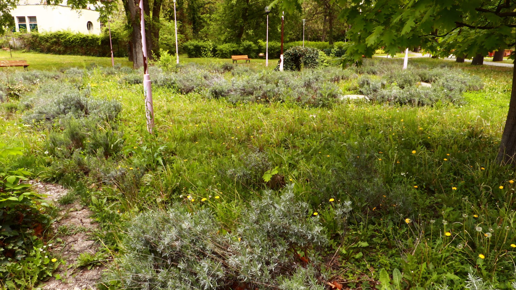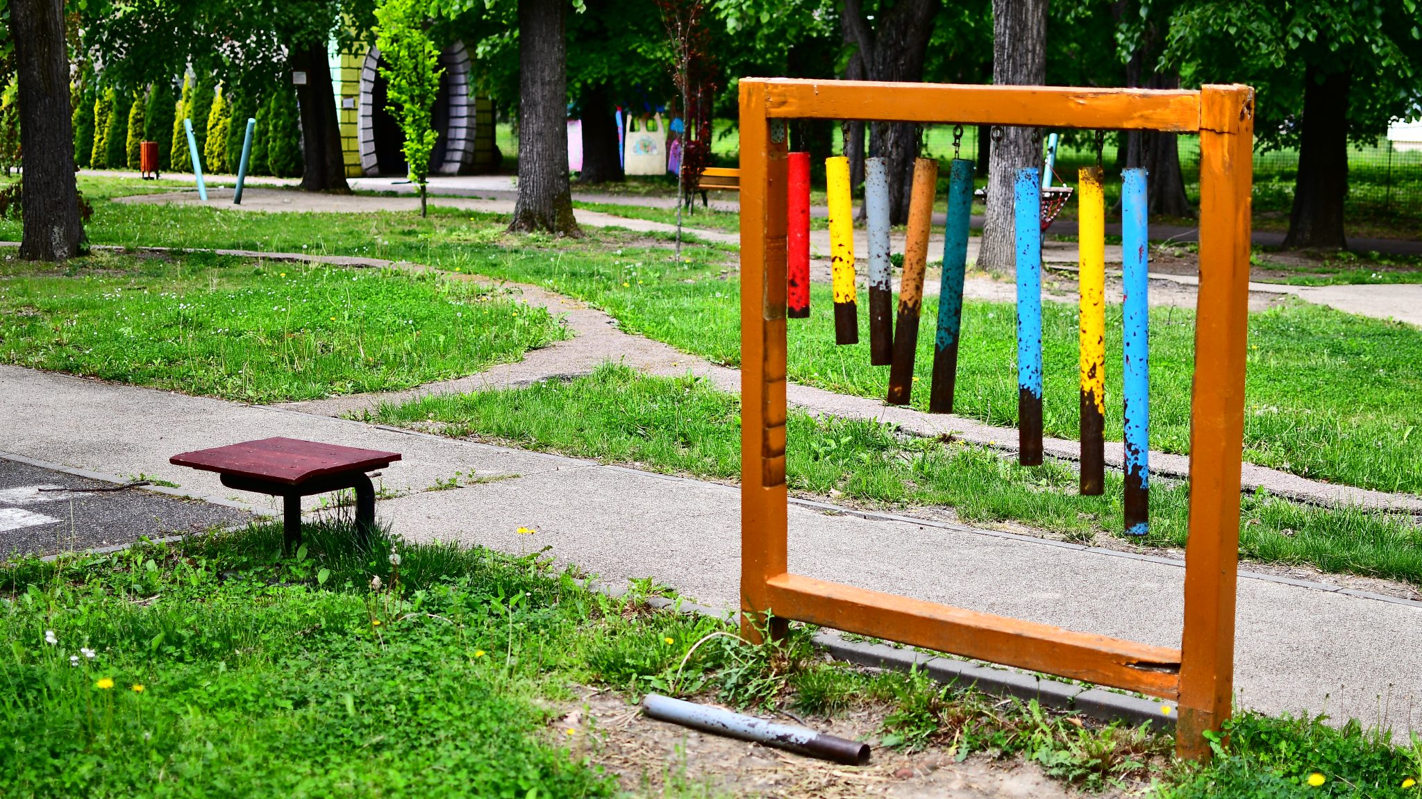 Doar coșurile de gunoi căzute la datorie ar mai trebui reparate ori schimbate. Apoi iarba tunsă la o dimensiune rezonabilă și treaba ar fi în regulă. Evident că accesul este interzis prin panglici alb-roșii, care delimitează zona pietonală de zona cu interdicții. Un trecător (cu siguranță vecin din cartier) intră în vorbă.