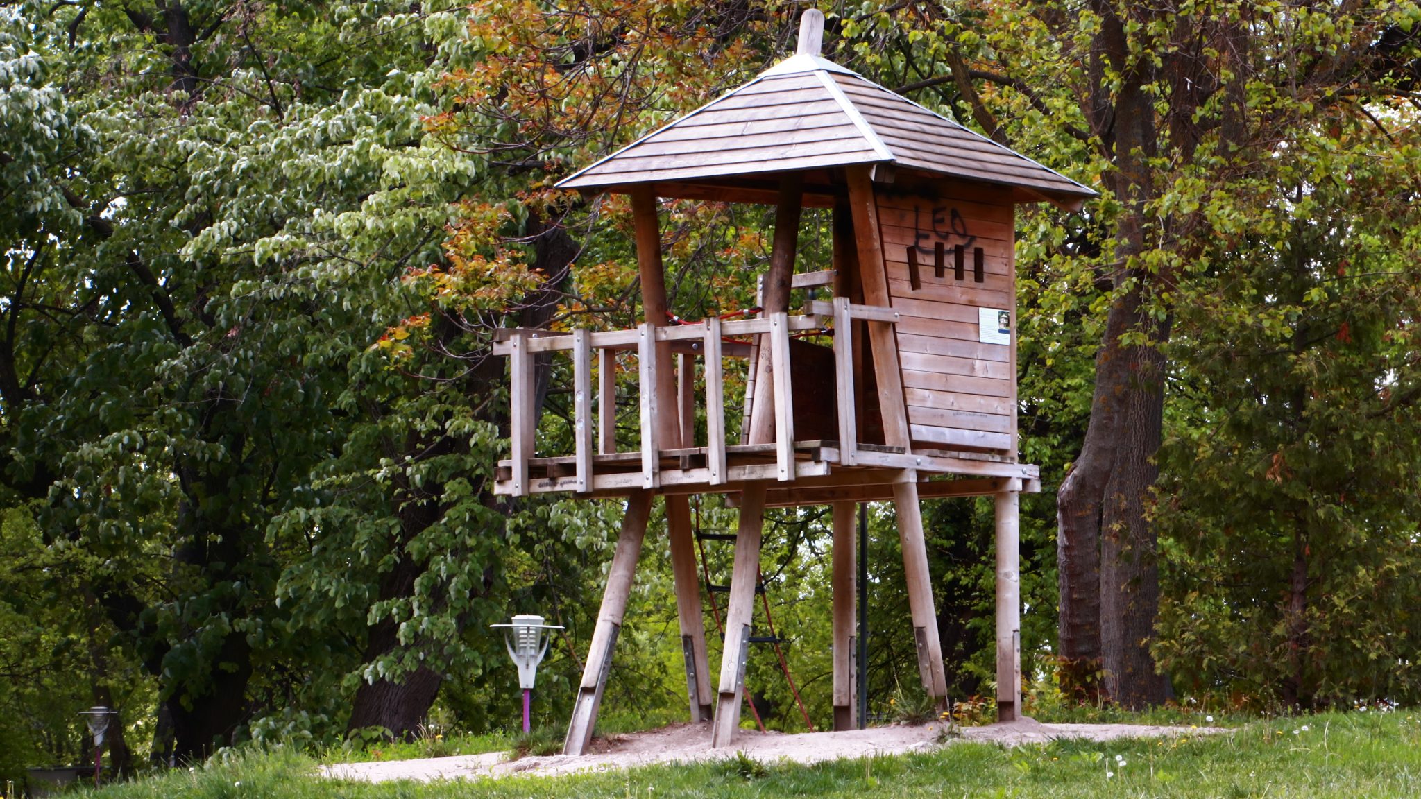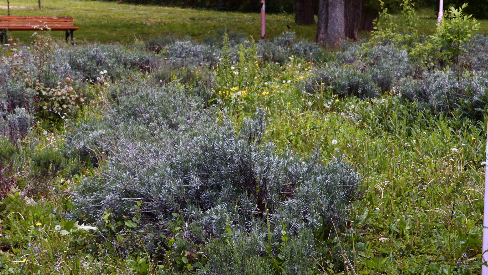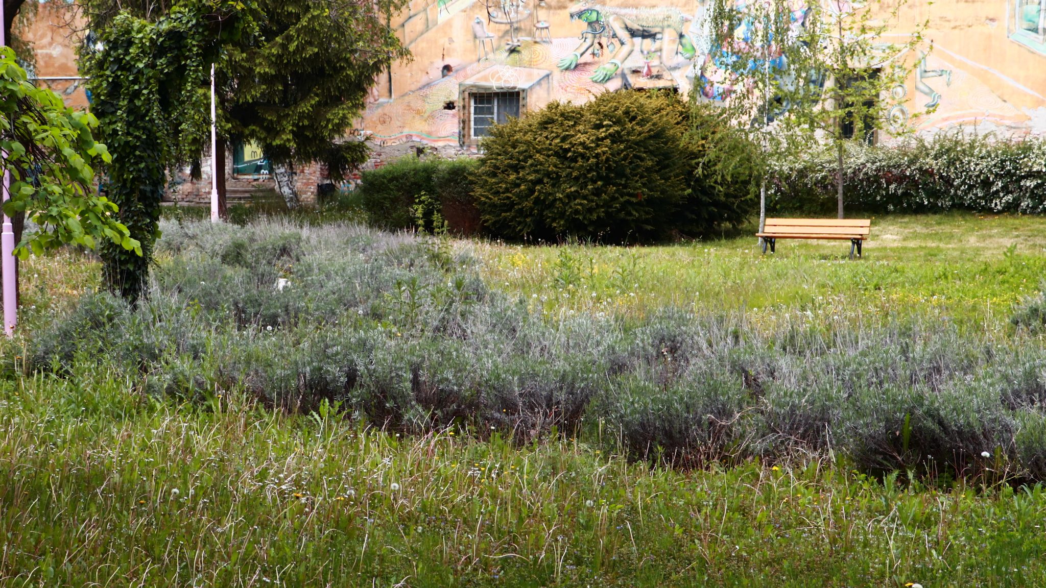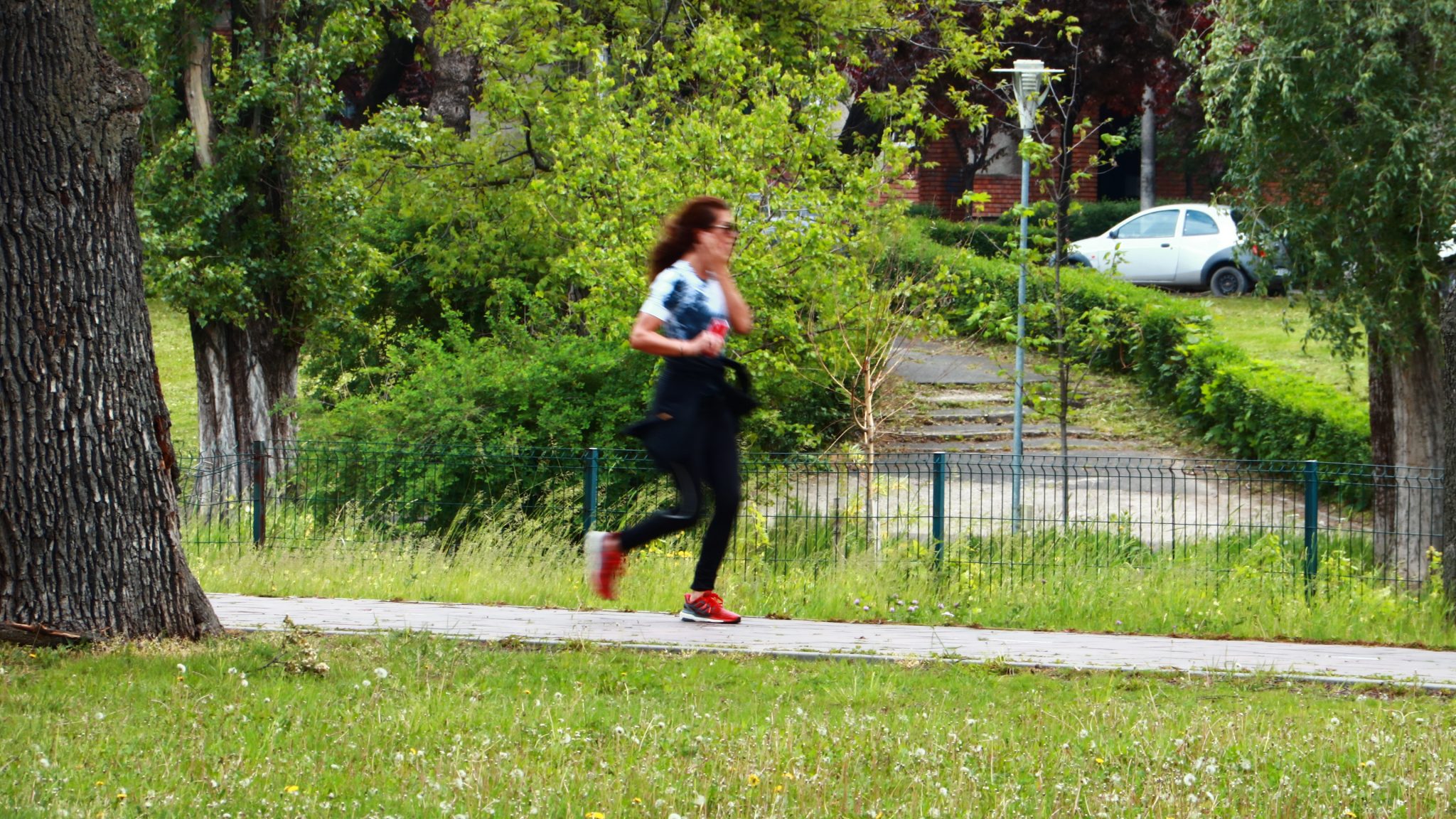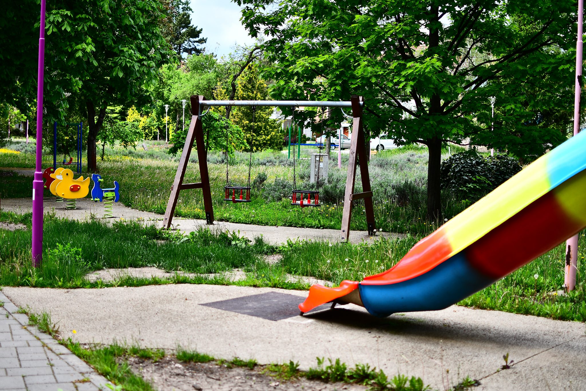Doar coșurile de gunoi căzute la datorie ar mai trebui reparate ori schimbate. Apoi iarba tunsă la o dimensiune rezonabilă și treaba ar fi în regulă. Evident că accesul este interzis prin panglici alb-roșii, care delimitează zona pietonală de zona cu interdicții. Un trecător (cu siguranță vecin din cartier) intră în vorbă.
