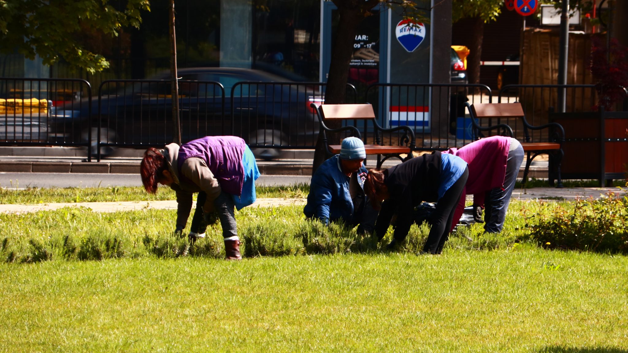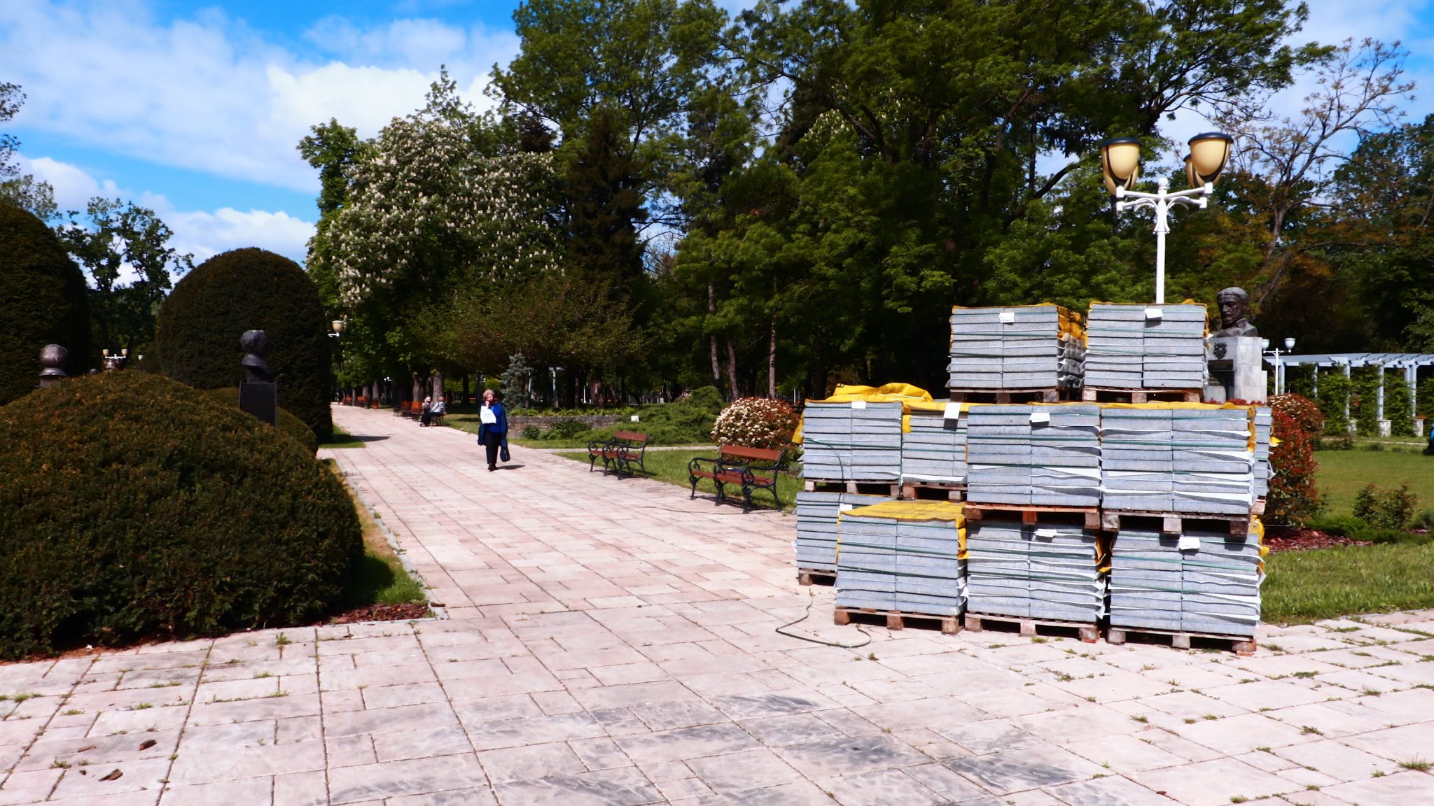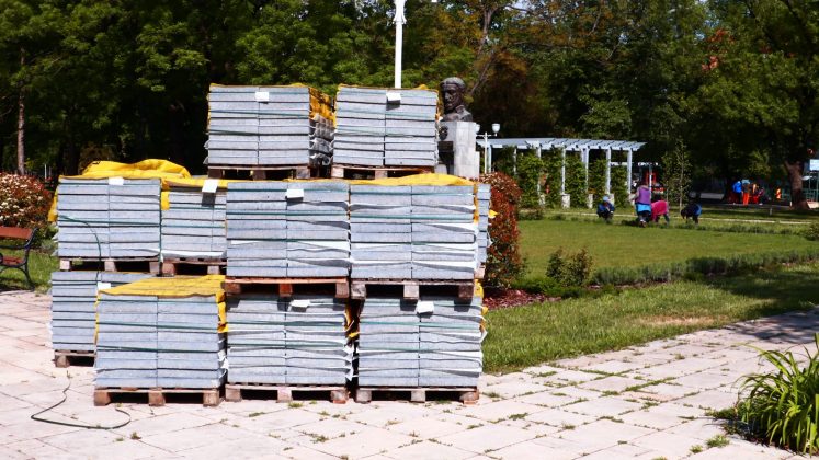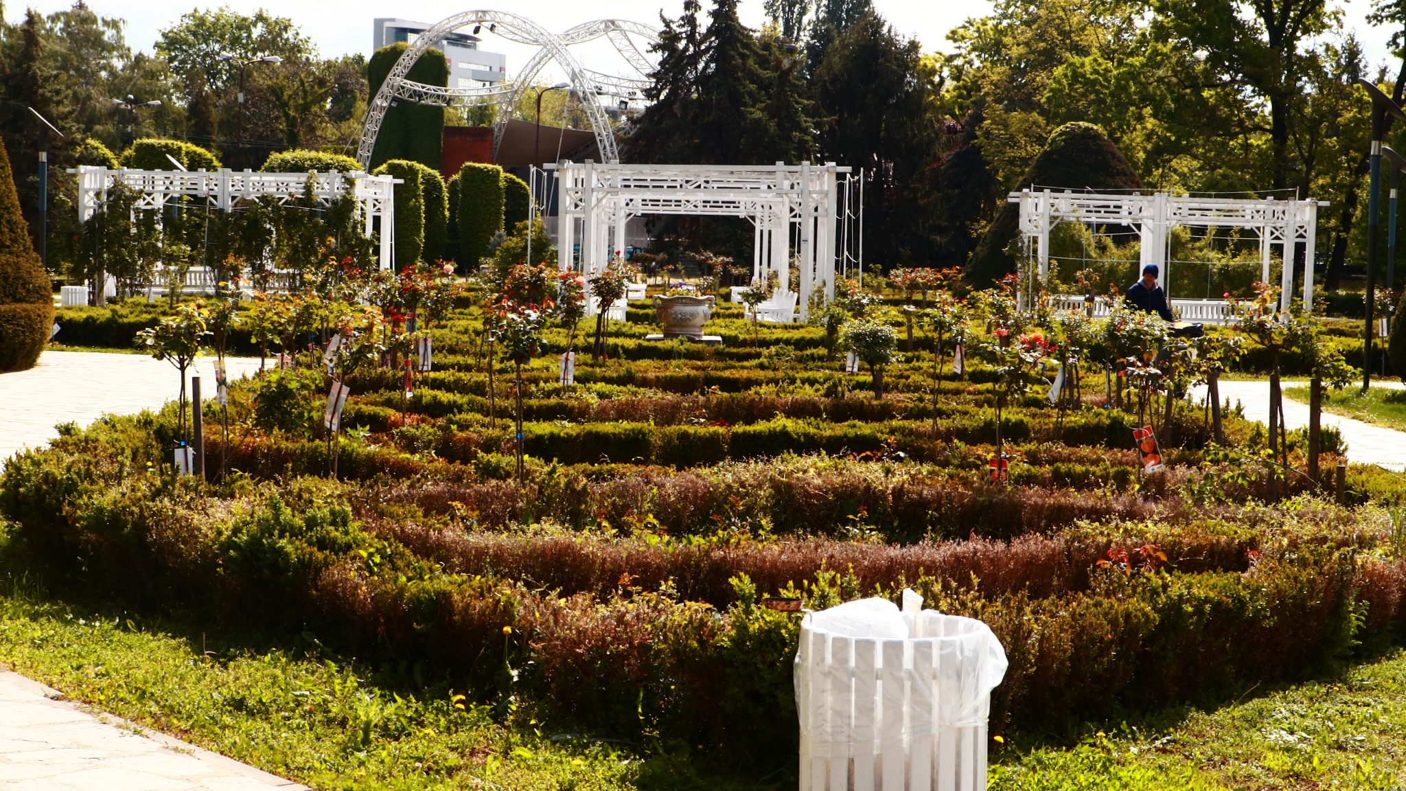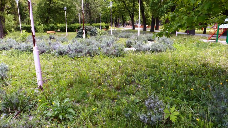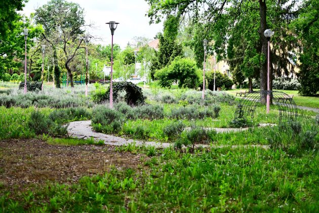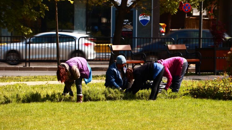 Peste drum în parcul emblemă al orașului, cel al „Rozelor” florile sunt în largul lor. Înfloresc, sunt verzi, unele sunt în floare, asemenea buruienilor ce se ițesc printre dalele de caldarâm. Dar totuși se vede ceva urmă de muncă. Câțiva saci de plastic plini cu iarbă și vocile unor doamne cu greble și sape arată că se întâmplă ceva.