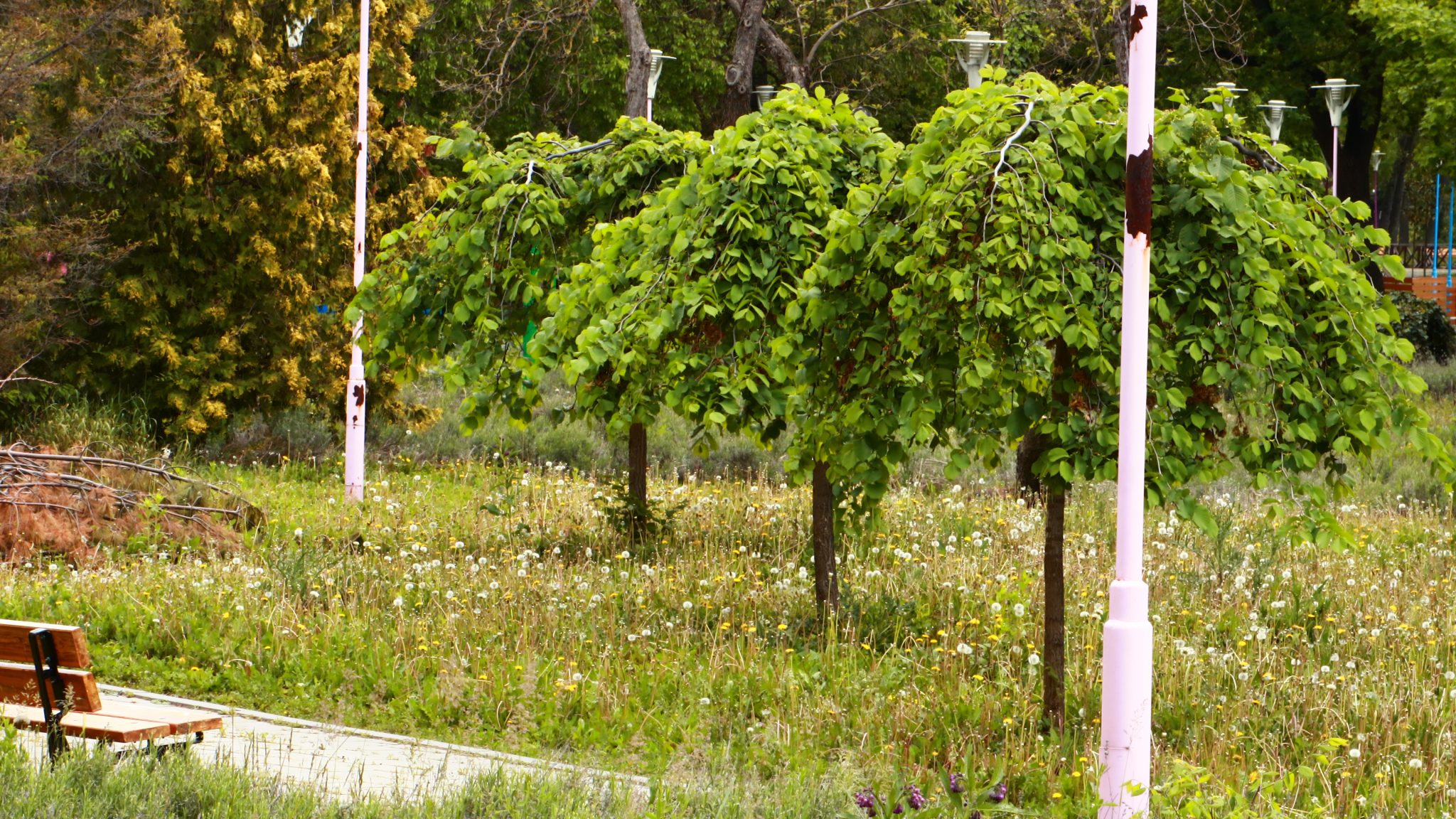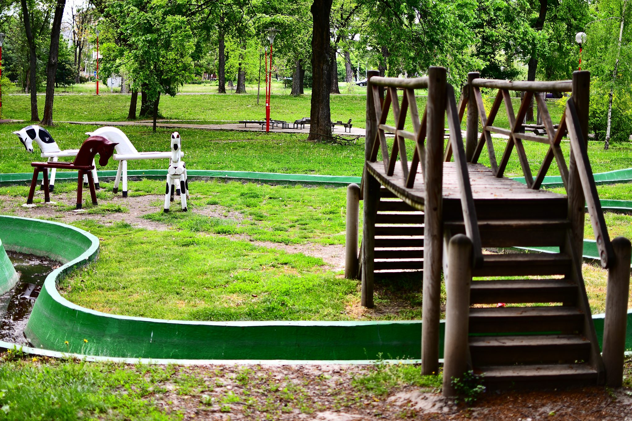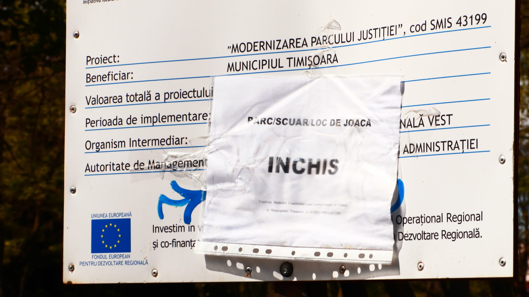-Cum e pe dincolo, pe celălalt mal? Și acolo e închis. Și arată și mai rău,cu toate că anul trecut s-a renovat. Într-adevăr, după ce trecem podul, situația se confirmă. Câțiva pomișori plantați anul trecut au căzut în lupta cu neghiobii ce își încearcă puterile. O soartă similară au avut și cîteva coșuri de gunoi de care am scris anul trecut. Sunt la fel și azi. Adică distruse.
