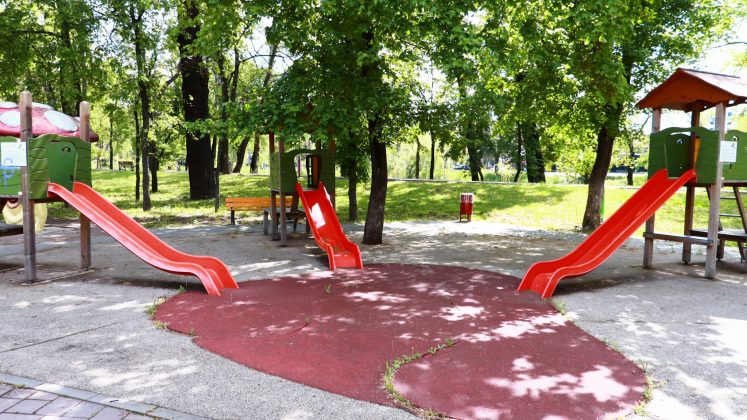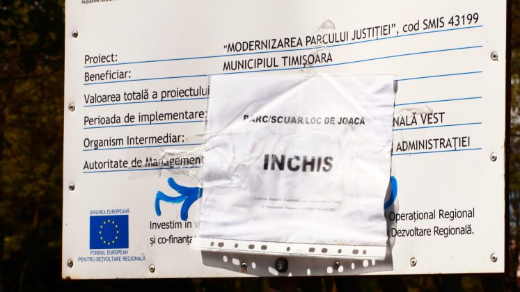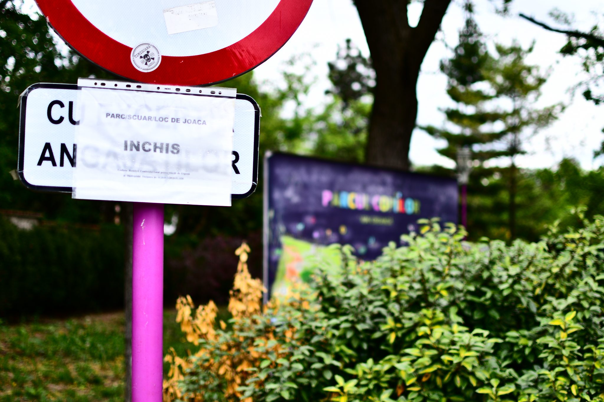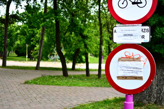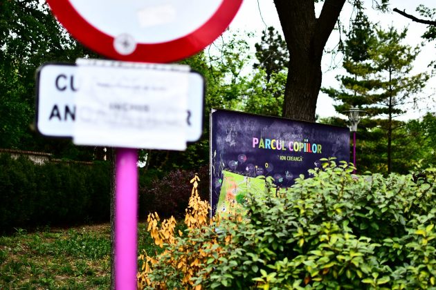 Fostul Parc al Pionierilor rebotezat „al Copiiilor” are aceleași benzi de plastic de interdicție. Ce folos? Cine vrea să treacă, trece în treaba lui scurtând drumul prin parc. Dar cei care ar fi cei mai îndreptățiți să-l folosească, cei mici, sunt ținuți departe de părinții cu frică de autorități. Cu toate că pericolele de tot felul ar fi mai mici aici decât pe trotuarele periculoase dimprejur, după cum ne explică o doamnă ce abia așteaptă să-și aducă nepoata când se va putea.