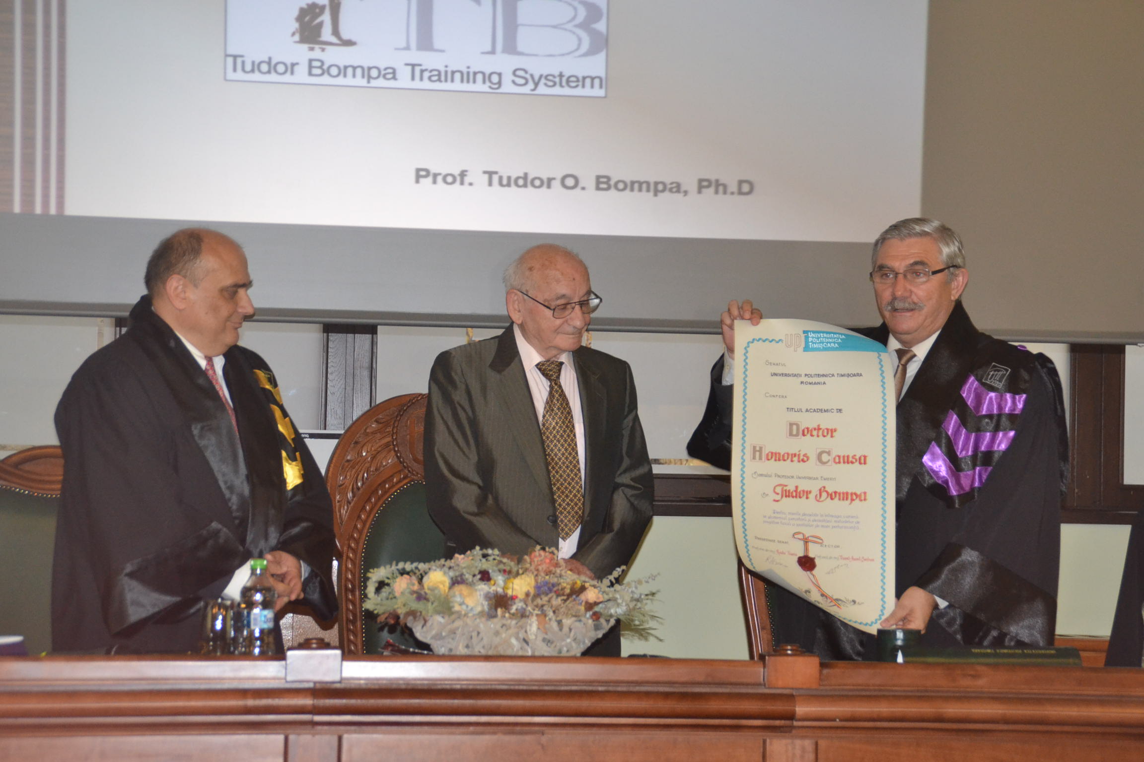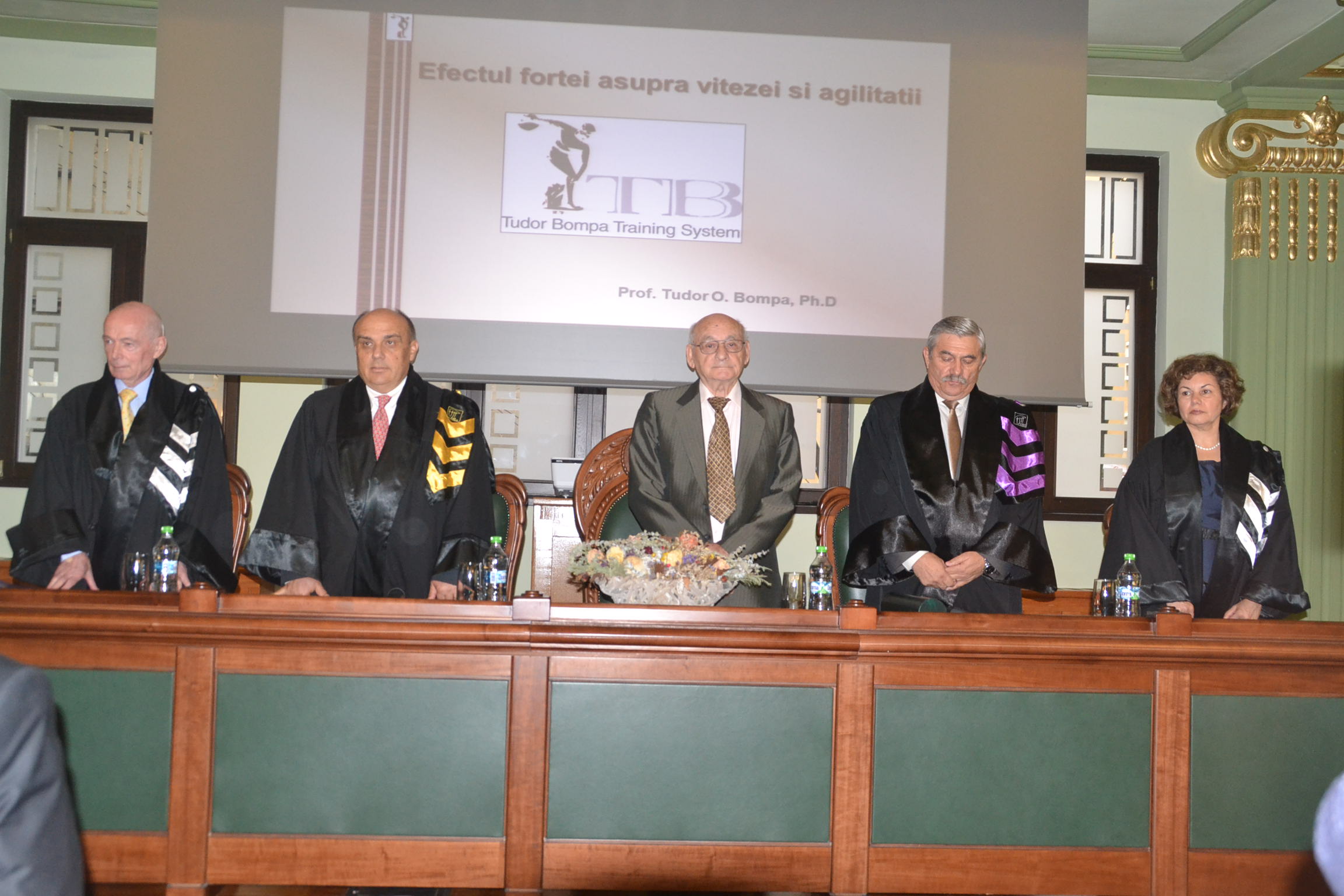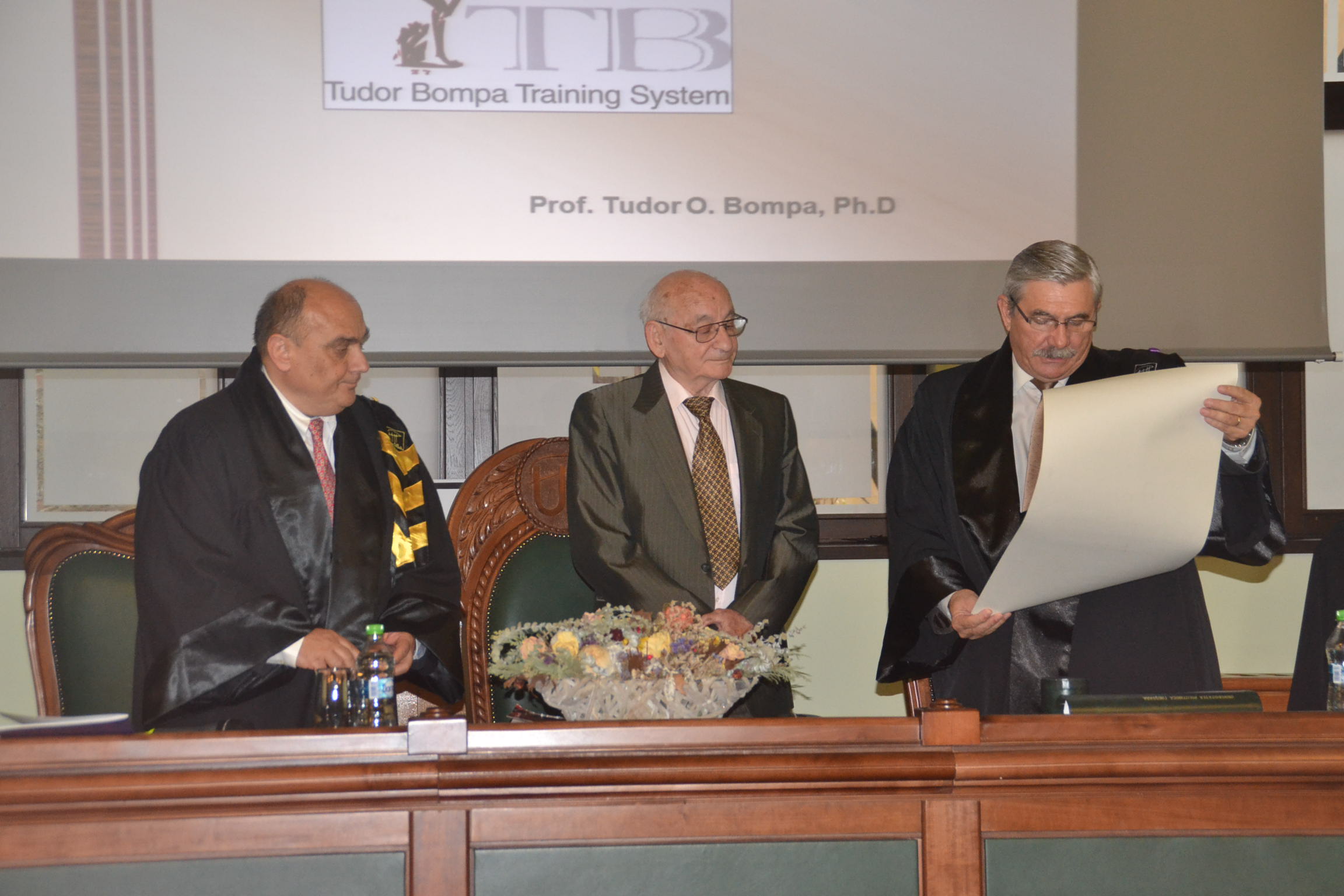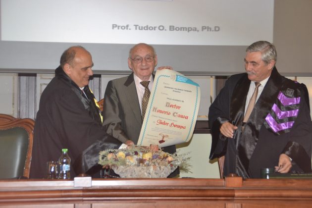 Într-o sală plină de profesori, prieteni și studenți a avut loc ceremonia de decernare a titlului onorific Doctor Honoris Causa profesorului doctor Tudor Bompa, de la Universitatea York din Toronto, Canada.