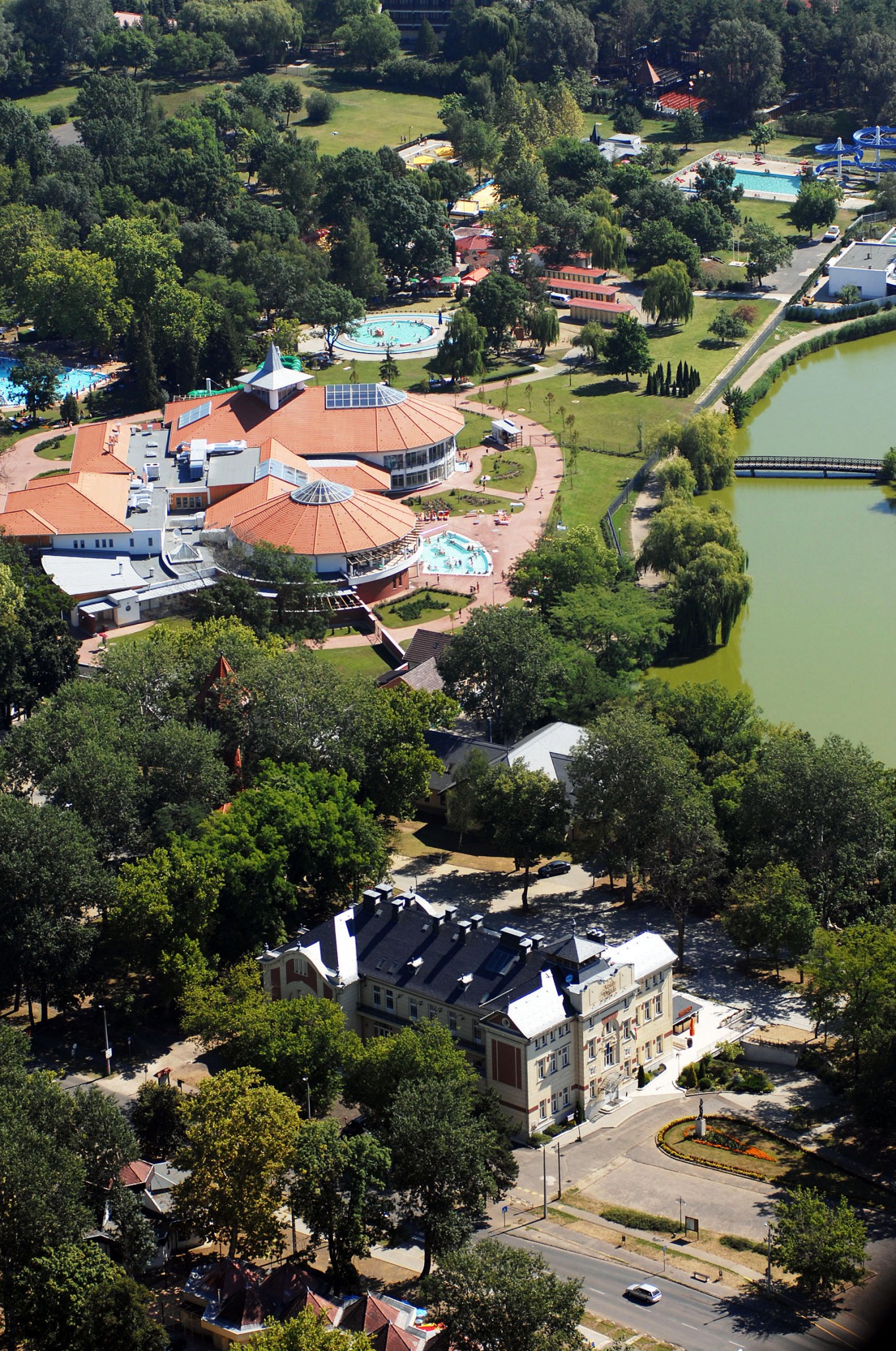 Una din cele mai importante atracţii este complexul de băi termale, format din băile Fürdőház, Tófürdő, Parkfürdő şi Baia Aquarius.