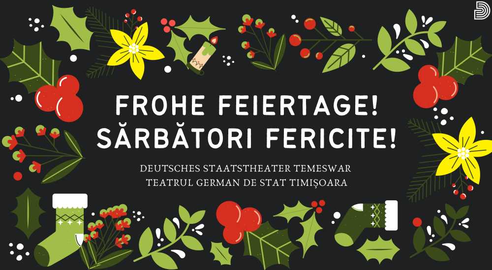 Echipa Teatrului German vă urează sărbători fericite și liniștite alături de cei dragi, și vă așteaptă la ultimele reprezentații din anul 2022, care vor avea loc în 27 și 28 decembrie – Cartea Junglei – și apoi în 30 decembrie – Leonce și Lena.