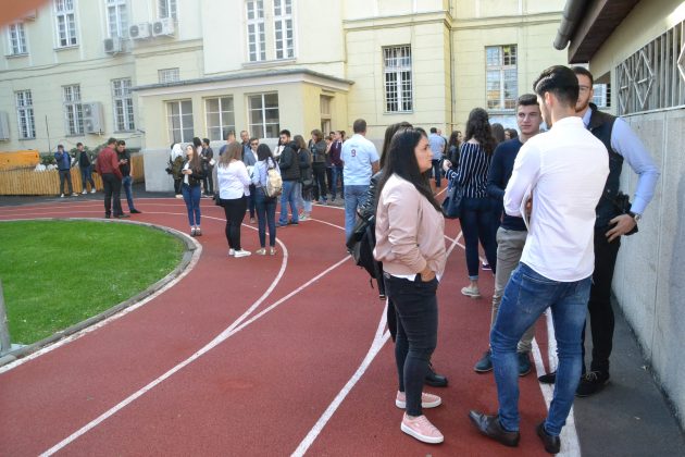 În fața Universitații, pe holuri, în curte și în Aula Magna era un puhoi de tineri dornici de carte cum rar se mai întâmplă. Sute de tineri boboci, însoțiți de prieteni și părinți, evident emoționați, era adunați pâlcuri și puneau țara (școala) la cale.