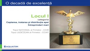 Aquatim se dovedește a fi, pentru al nu se mai știe al câtelea an consecutiv, cea mai performantă firmă. Și nu doar din județul nostru cât mai cu seamă din întreaga Românie. Nu sunt simple vorbe de laudă (meritată), ci e realitatea întărită de cea mai prestigioasă distincție primită de la Camera de Comerț, Industrie și Agricultură a României pentru întreaga activitate din acest an. Operatorul de apă și canalizare, care acoperă cu serviciile sale aproape tot județul, este campionul de necontestat al invetițiilor făcute cu fonduri europene.