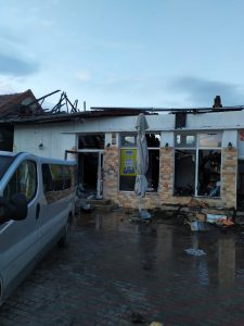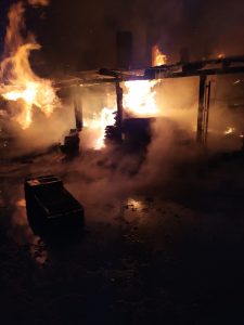 „La ora 02:45, am fost solicitați pentru lichidarea unui incendiu la o societate comercială în localitatea Găvojdia. La locul intervenției s-au deplasat de urgență 4 autospeciale de stingere, o autoscară de intervenție la înălțime, un echipaj SMURD și 23 de pompieri. La sosirea echipajelor la locul intervenției, incendiul se manifesta cu ardere generalizată la întreg acoperișul clădirii și anexelor, pe o suprafață de aproximativ 400 mp.