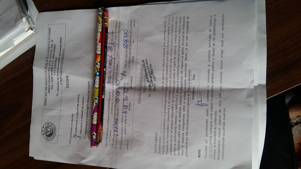 Cazul prezentat l-a determinat pe un bărbat să trimită la redacție actul prin care era plasat în izolare pentru o perioadă de 14 zile, dar, atenție, începând cu data de 28 august și până în 11 august! O greșeală ce poate fi scuzată de volumul mare de muncă a medicilor, însă este surprinzătoare și greșeala de calcul. Sau sunt alte motive care ar explica noua „ispravă” a autorităților sanitare? Așteptăm poziția lor și în acest caz, ca și în cel prezentat de Raul Bastean asa cum ni s-au dat asigurări.