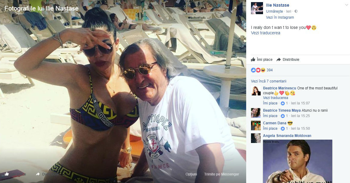 Ilie Năstase a postat o fotografie pe pagina sa personală de Facebook, în care apare el și Brigitte, pe plajă, scriind următorul comentariu: ,,I really don’t want to lose you”. (”Chiar nu vreau să te pierd”)