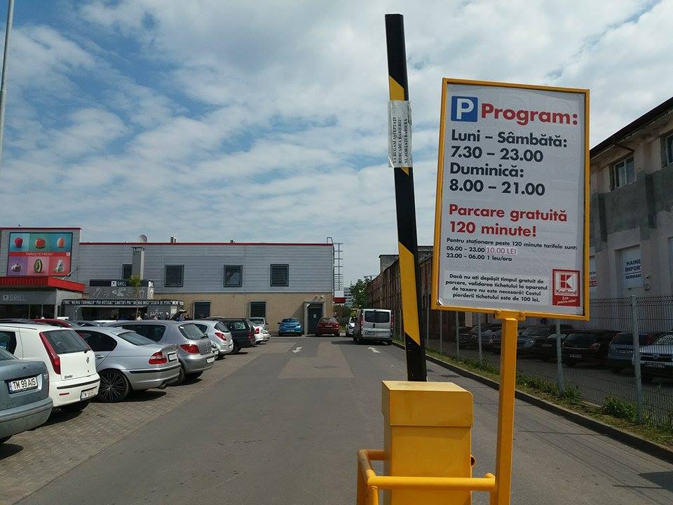 La Kaufland-ul de pe strada Gheorghe Lazăr este afișat la loc vizibil cum se poate parca. Adică timp de două ore gratuit, după care se aplică un tarif de parcare ce diferă în funcție de orele de noapte sau de zi. Faptul ca o firmă privată, ce funcționează după principii economice poate stabili anumite condiții clienților săi ar putea fi, poate, înțeles. Nu e foarte clar însă dacă firma are dreptul de a bloca roțile mașinii. Cât despre clienți, măsura ar putea să-i îndepărteze de respectivul centru comercial.