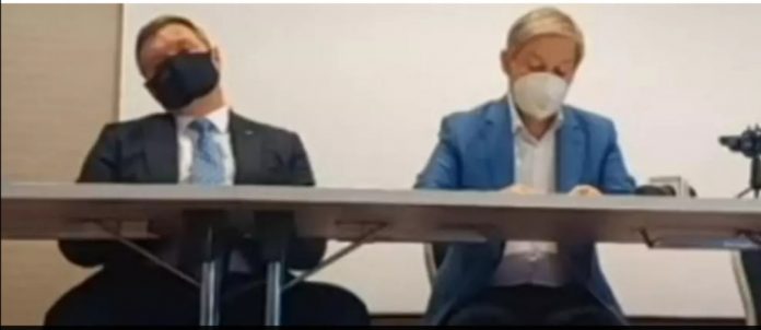 Ministrul Cercetării, Inovării și Digitalizării, Ciprian Teleman, a fost surprins cu ochii închiși și ținându-și capul drept cu greutate, în timpul conferinței de presă susținută de Dacian Cioloș, la Sibiu.