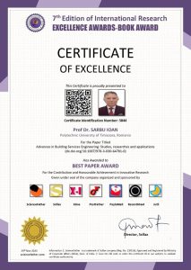 O nouă recunoaștere internațională a valorii cadrelor didactice, dar și a cercetării derulate în Universitatea Politehnica Timișoara vine tocmai din India, unde profesorului emerit Ioan Sârbu i s-a conferit premiul internațional „Best paper award” de către organizația științifică ScienceFather, la a VII-a ediție a Premiilor de Excelență în Cercetarea Internațională (International Research Excellence Awards), care îi apreciază activitatea exemplară și rezultatele cercetărilor, incluse în cartea „Advances in Building Services Engineering: Studies, researches and applications”.