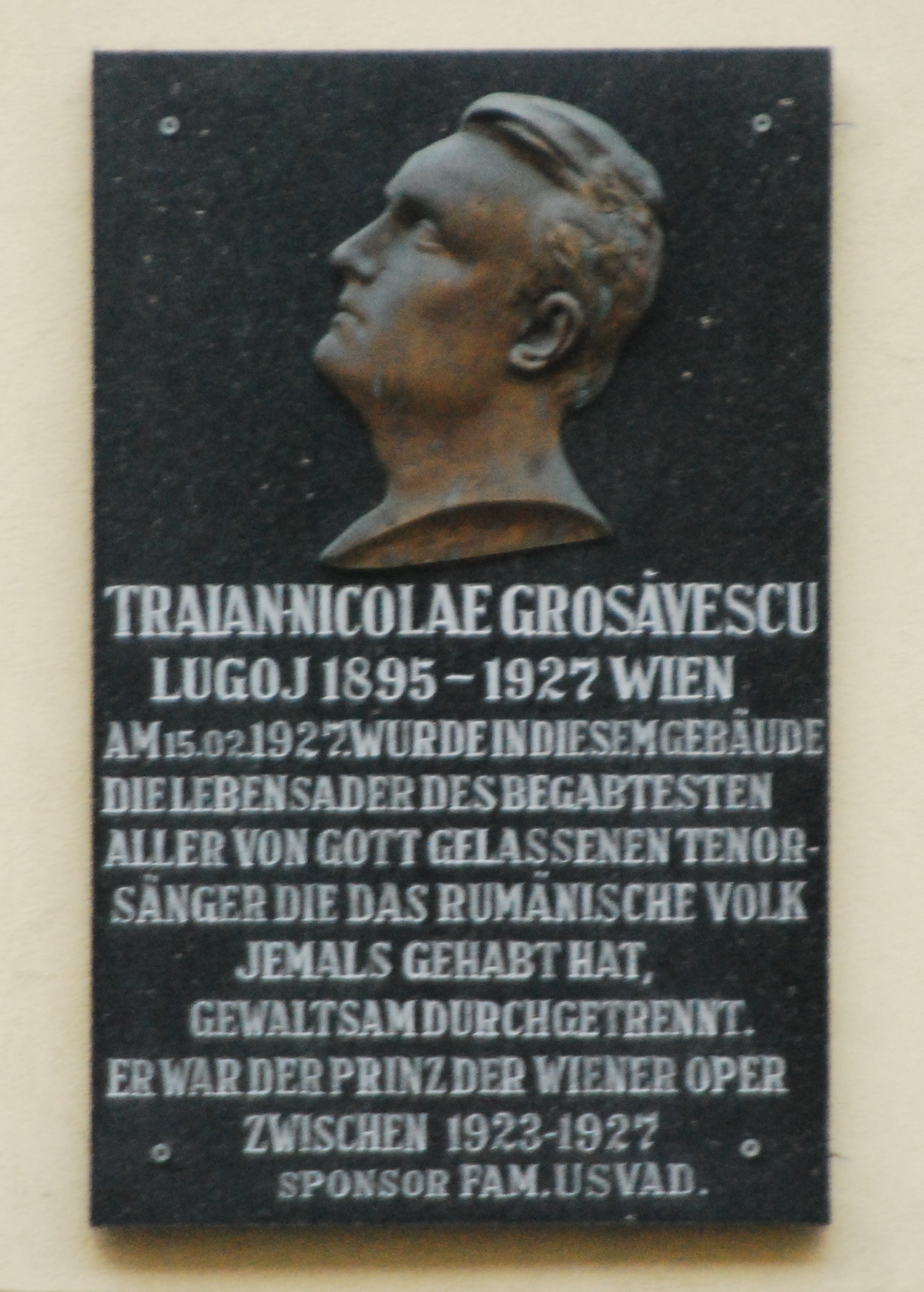 Dar cum nu totul merge bine, nefericitul tenor plecat prea repede este în continuare urmărit de ghinion. În Timișoara, în parcul Regina Maria, are un bust destul de semeț și armonios lucrat. E cam ascuns vederii în zilele de vară, când nu prea se zărește. Dar tot a fost găsit de niște neisprăviți care nu au avut ce face mai înțelept decât să rupă o bucată din piatra statuii. Lipsește chiar nasul operei. Faptul este cunoscut de edilii locali. O dată la câțiva ani promit foarte solemn că vor remedia lucrarea cât de repede. Trec anii și nu se întâmplă nimic. După care iar apar promisiunile că se repară. Și iar degeaba.