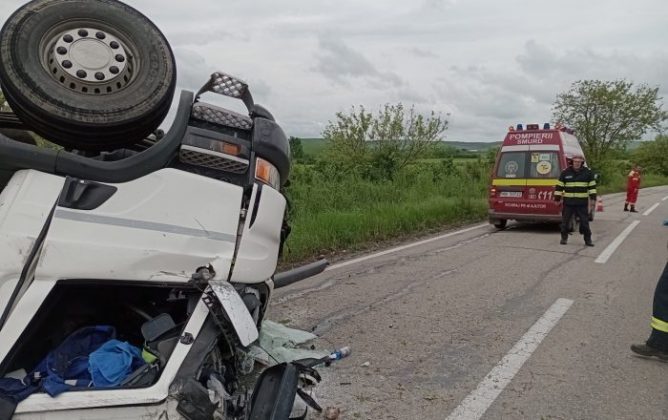 „În automacara se afla doar șoferul. Acesta prezenta plăgi multiple și escoriații la nivelul feței, fiind transportat de către ambulanța SMURD la Spitalul Clinic Municipal de Urgență Timișoara„, transmite ISU Timiș.