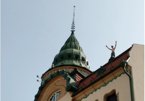 Agitaţie, miercuri înainte de prânz, în Piaţa Unirii din Oradea. Un tânăr dezbrăcat a urcat pe acoperişul Palatului Vulturul Negru şi ameninţă că se aruncă.