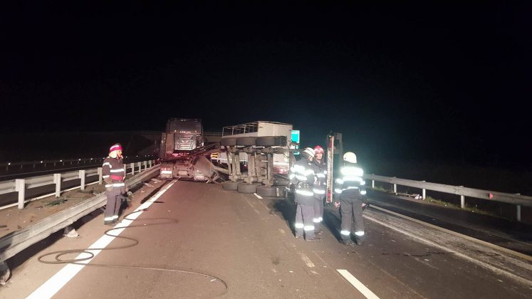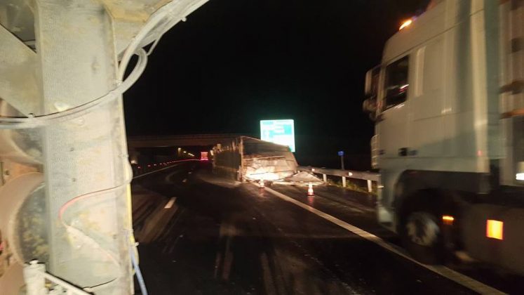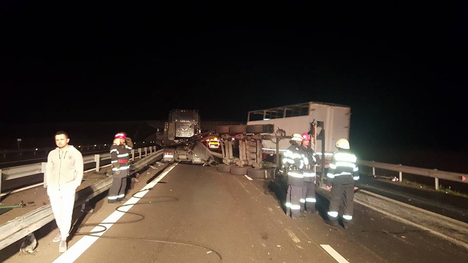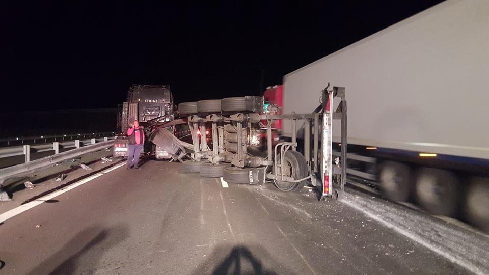Circulația a fost blocată mai bine de o jumătate de oră, azi-noapte, pe A1 după ce, în jurul orei 1.30 un automafar încărcat cu ouă s-a răsturnat pe A1, pe sensul de mers spre Lugoj. După aproximativ 35 de minute, timp în care s-au format cozi de 2 km, circulația a fost reluată, dirijată, printre resturile TIR-ului.