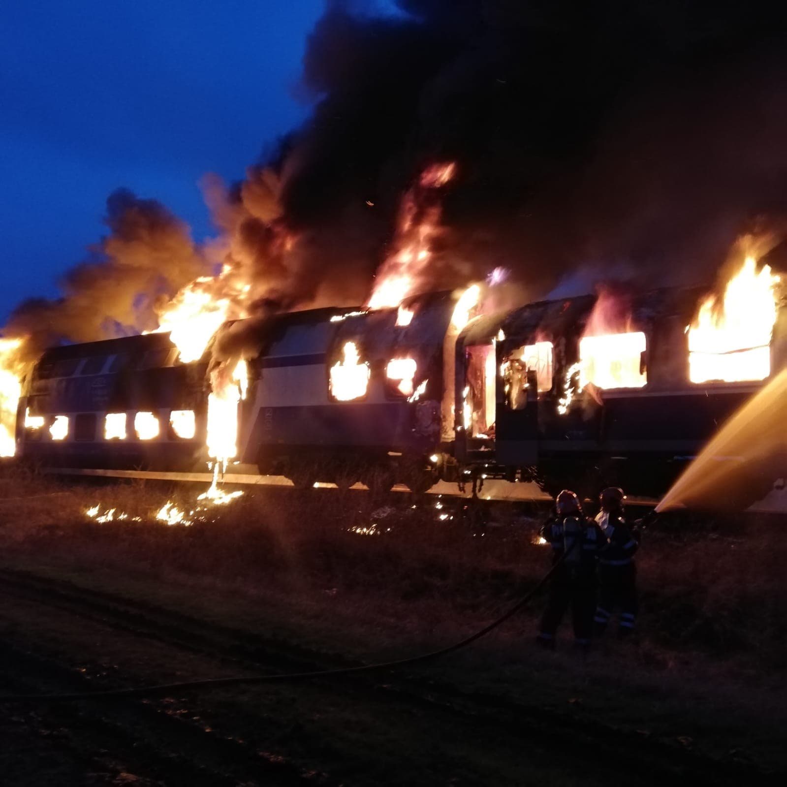 În trenul format din cinci vagoane se aflau 100 de călători, atunci când a izbucnit incendiul, la ultimele două vagoane, arată Centrul Infotrafic al Poliției Române. „Traficul feroviar este oprit pe magistrala 900, la intrare în stația CF Măldăeni, județul Teleorman, după ce la nivelul unui tren de călători, cu 100 de persoane la bord, compus din cinci vagoane, care circulă pe relația București –Târgu Jiu, a izbucnit un incediu la ultimele două vagoane”, a precizat sursa citată.