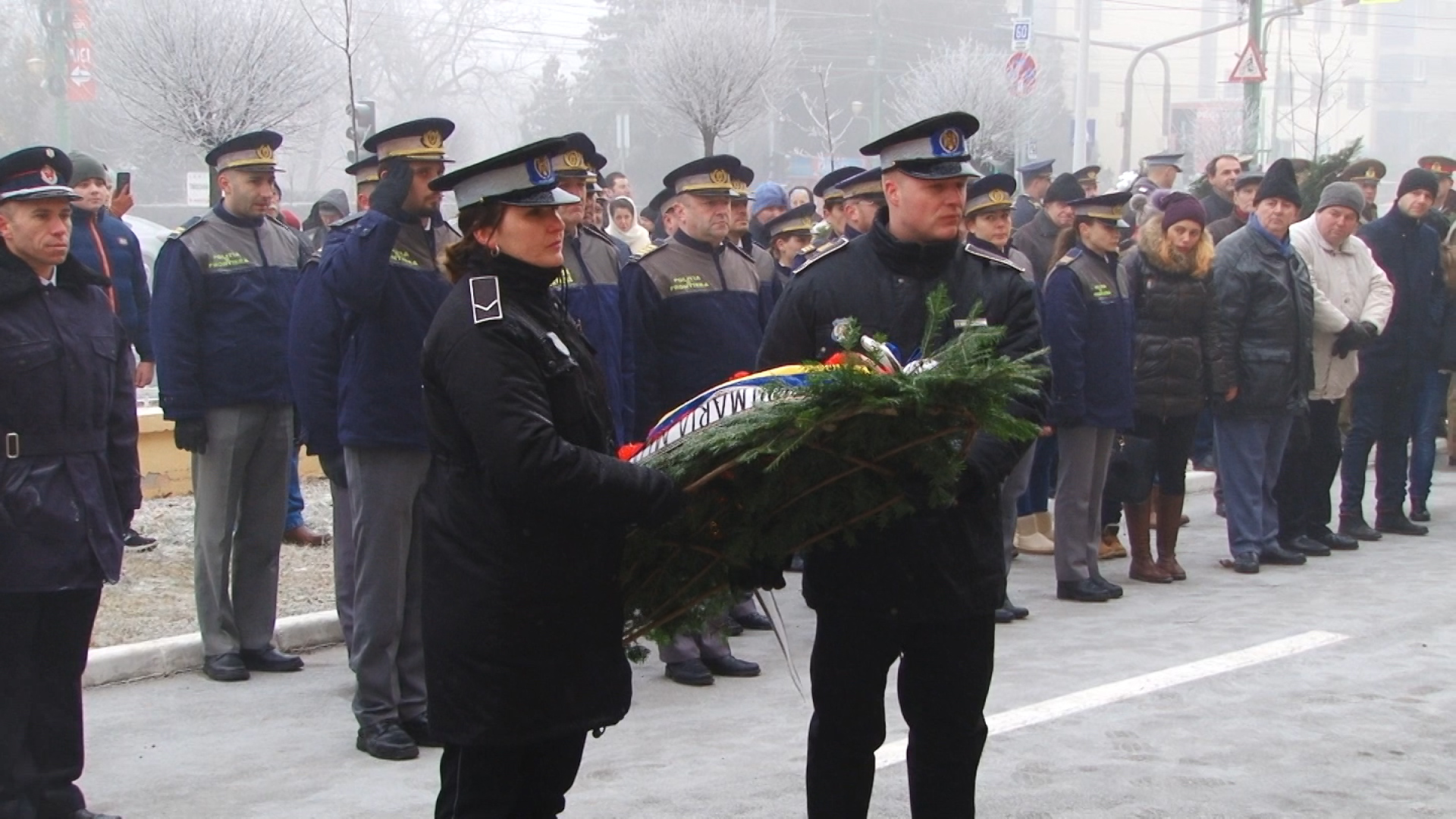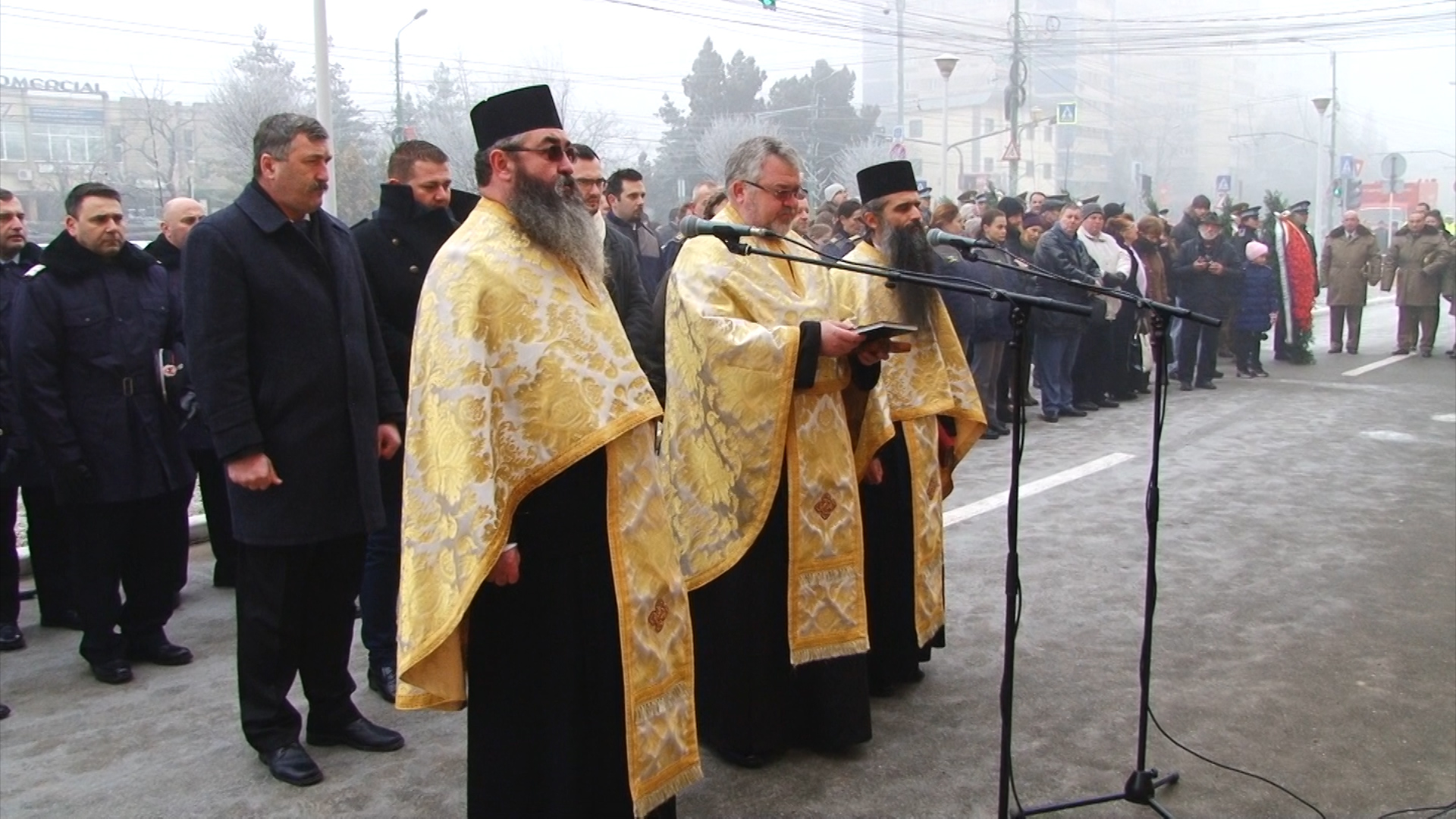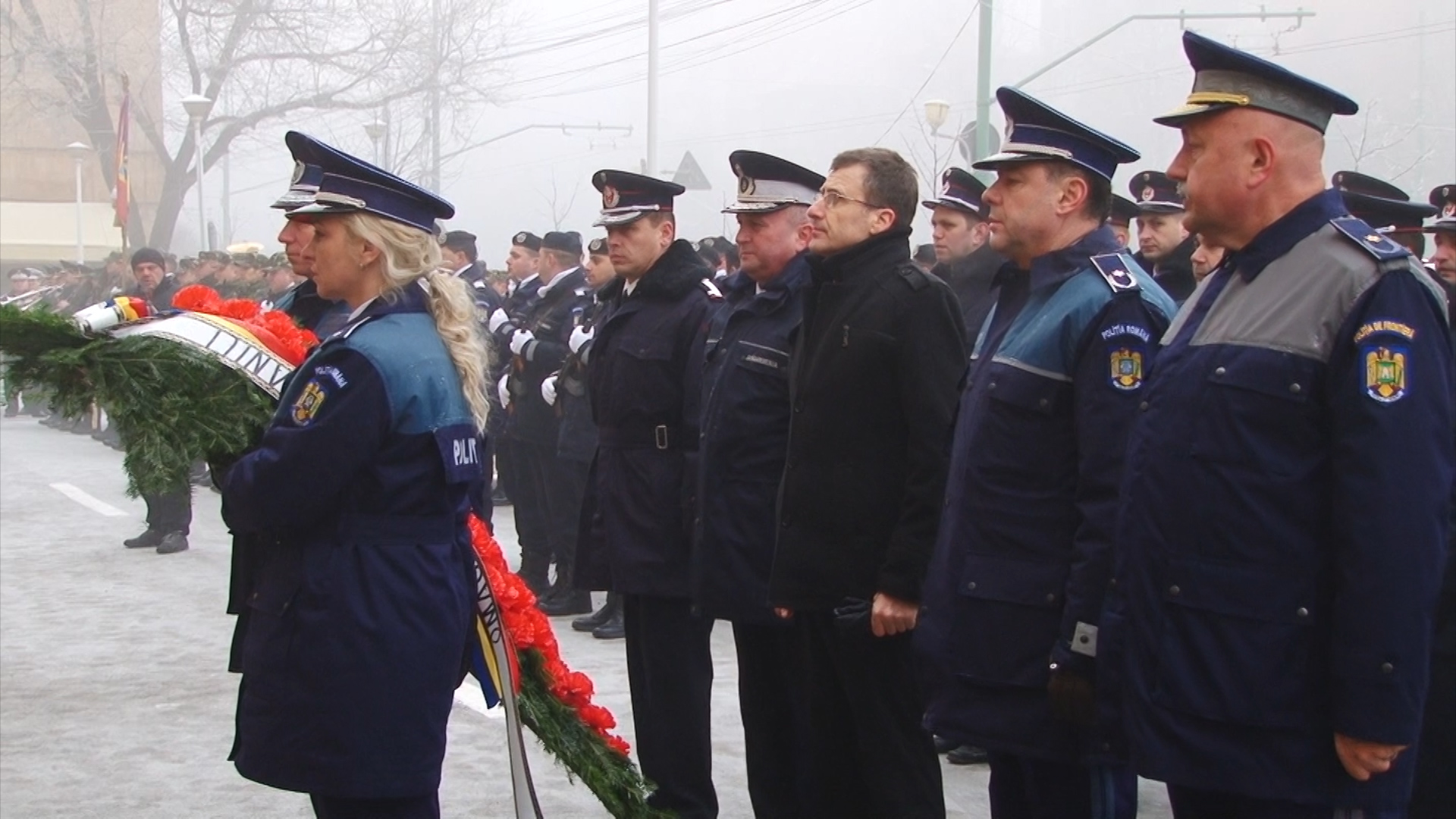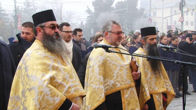 Cei prezenți, care au îndurat frigul pătrunzător, au putut asista la un ceremonial religios oficiat de un sobor de preoți ai Arhiepiscopiei Timișoara, depuneri de coroane din partea autorităților locale, a unor instituții și din partea reprezentanților Armatei.