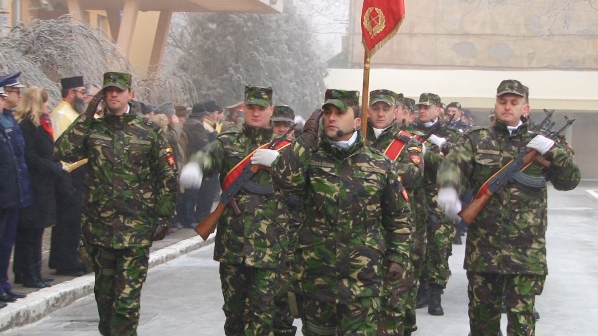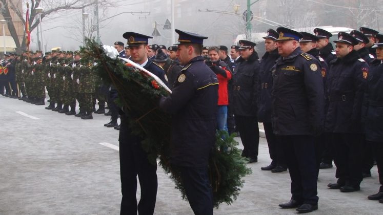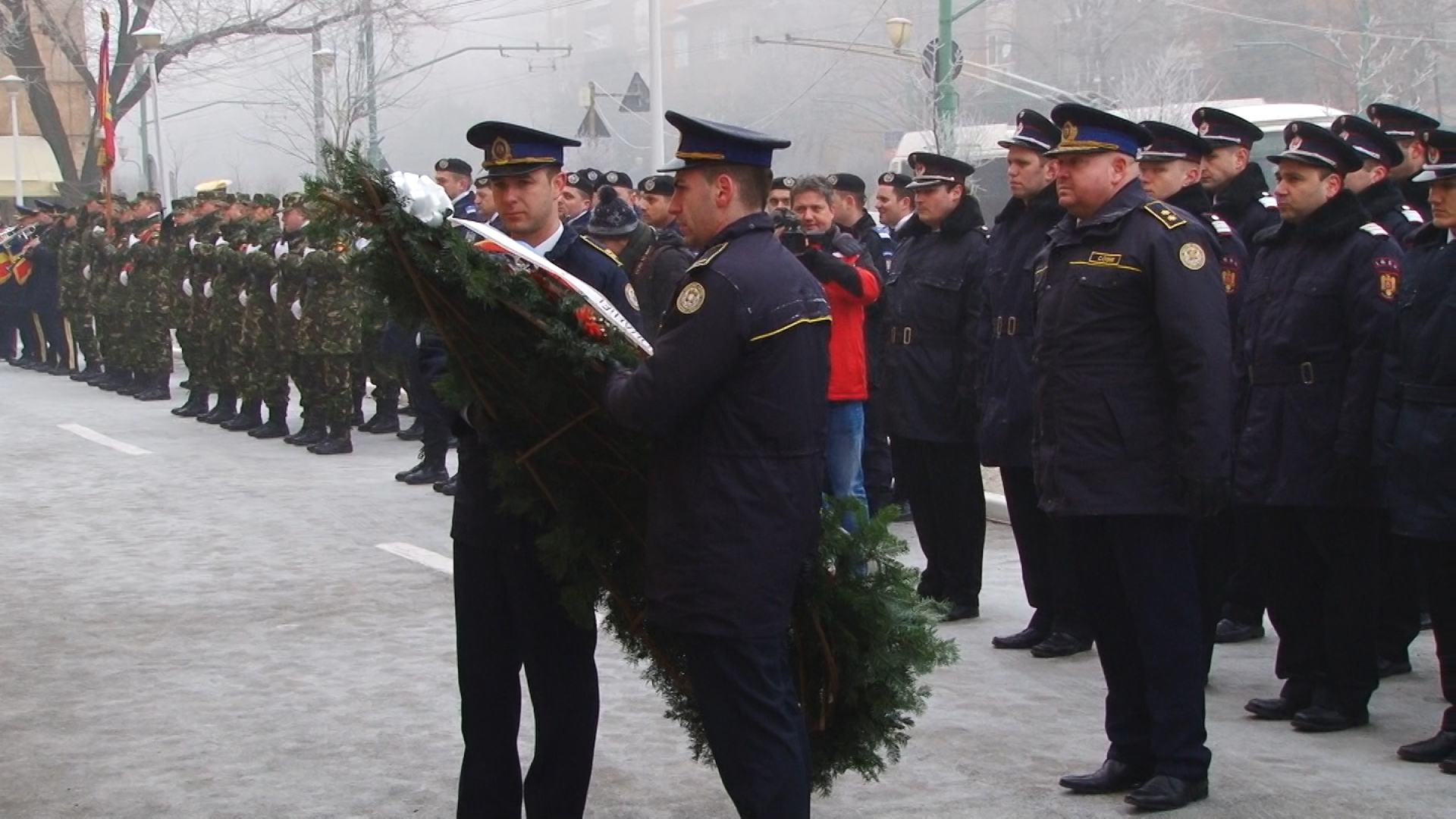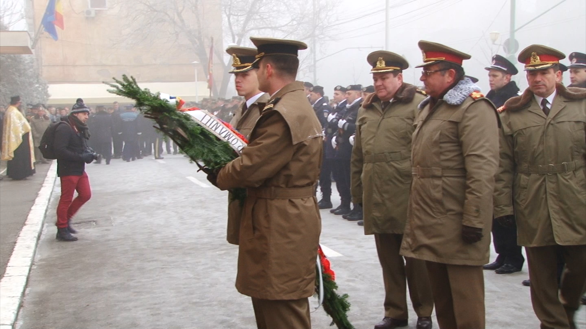 Cei prezenți, care au îndurat frigul pătrunzător, au putut asista la un ceremonial religios oficiat de un sobor de preoți ai Arhiepiscopiei Timișoara, depuneri de coroane din partea autorităților locale, a unor instituții și din partea reprezentanților Armatei.