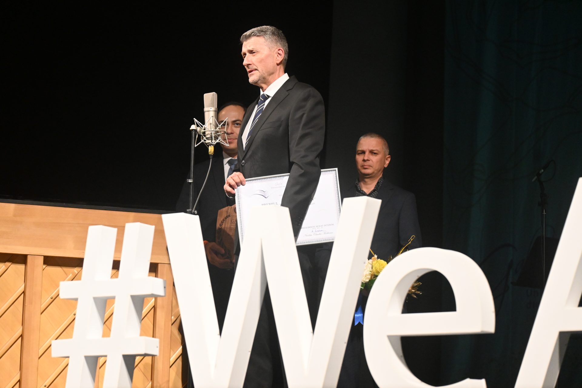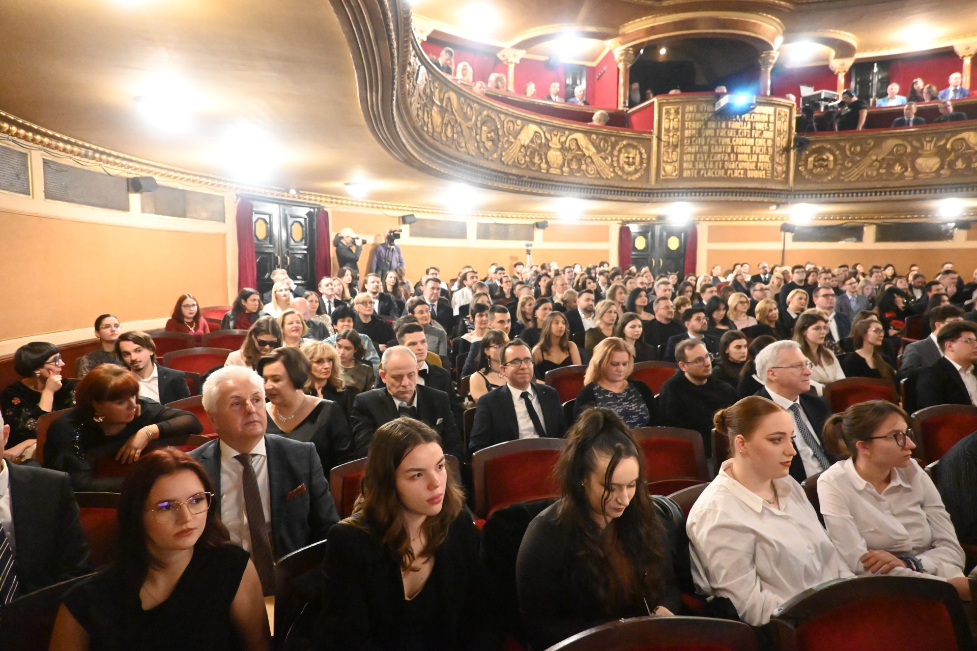 Comunitatea academică a Universității de Vest din Timișoara s-a reunit în seara de joi, 20 noiembrie 2025, în spațiul elegant al Teatrului Național „Mihai Eminescu” din Timișoara, pentru a recunoaște meritele și performanțele remarcabile ale membrilor săi. Împreună, invitați din comunitate, reprezentanți ai partenerilor instituționali, cadre didactice, studenți și cercetători, au sărbătorit excelența și performanțele universitare în cadrul Galei Premiilor UVT.