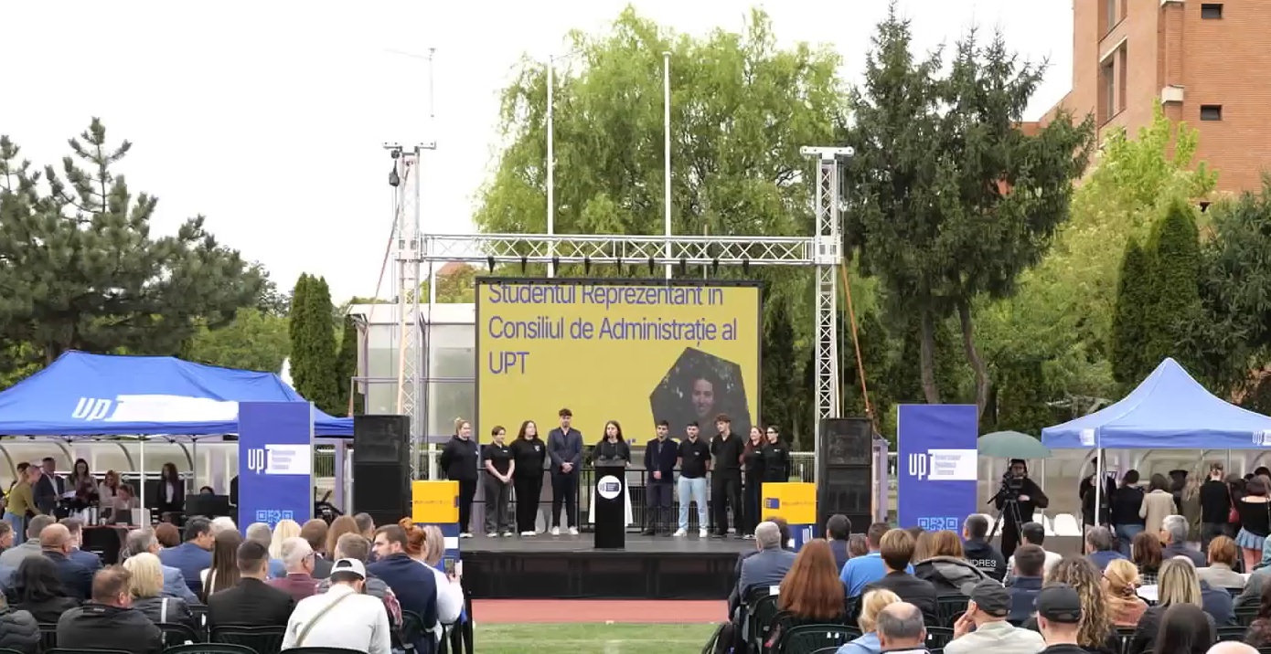 Politehnica Timișoara a avut loc vineri, 26 septembrie 2025, pe Stadionul Știința, în prezența studenților, a părinților acestora, a cadrelor didactice, a conducerii UPT și a invitaților din mediul economic. Evenimentul a avut o semnificație specială, prin decizia conducerii UPT de a oferi studenților șansa de a transmite, de pe scena festivității, mesajele și preocupările generației actuale.