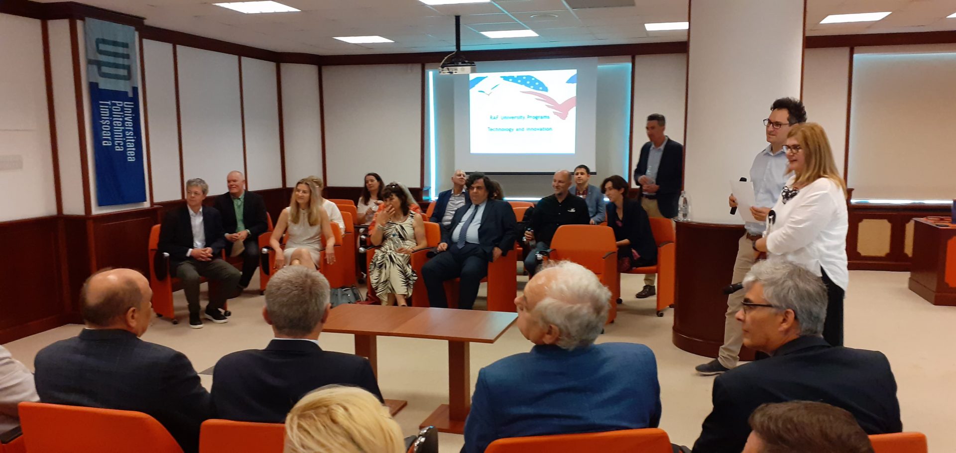 Reprezentanții Fundației Româno-Americane au prezentat proiectele pe care le derulează, în special cele dedicate universităților, în multe dintre acestea fiind implicată și Universitatea Politehnica Timișoara: Innovation Labs, Universitatea antreprenorială, bursele Fulbright, Med Tech, University Leadership Program.