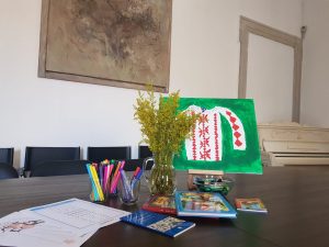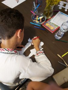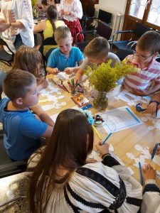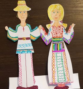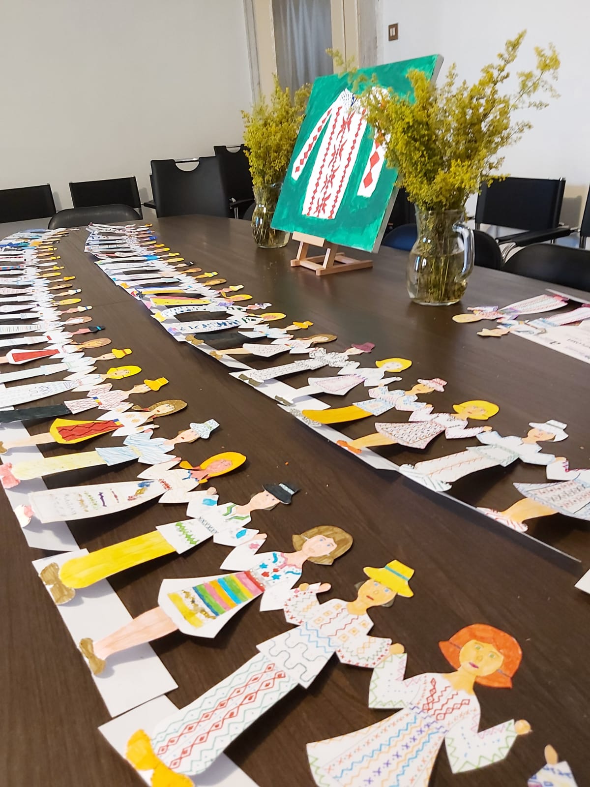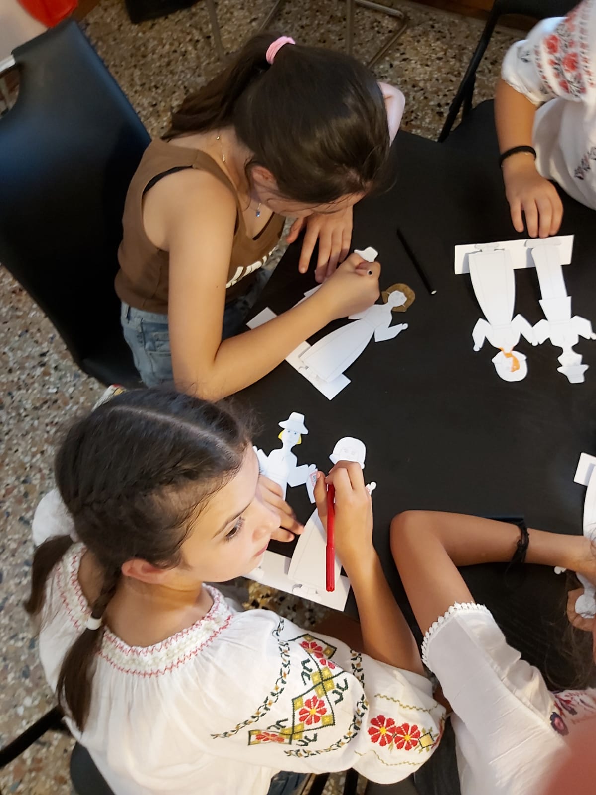 Partea de prezentare a fost însoțită de un atelier creativ realizat de colega noastră, ș.l.dr.arh. Cristina Maria Povian, de la Facultatea de Arhitectură și Urbanism a UPT. Atelierul creativ a cuprins și un concurs de creație în care copiii au decorat, având la bază un șablon reprezentând o siluetă masculină și una feminină, două personaje de basm în costume populare tradiționale, pentru a putea fi folosite în ilustrarea unei cărți de povești românești.