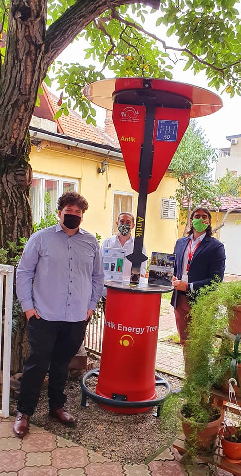 Stația de încărcare Antik „Energy Tree” (autori: studenții Sapta Doru Ioan, Marinuț Gabriel Paul, Chira Sorina Mihaiela, Mândru Gabriel Daniel) este un dispozitiv multifuncțional bazat pe energie regenerabilă, cu scopul de a remedia problema cetățeanului modern care de multe ori, când este în spațiul public, ajunge în situația de a fi nevoit să își încarce dispozitivul mobil, dar nu are acces la o sursă de curent. Acesta este construit din materiale rezistente indiferent de condițiile meteo, cu diferite tehnologii moderne pentru a oferi utilizatorului său o experiență cât mai plăcută. Antik Energy Tree are ca scop creșterea autonomiei dispozitivelor mobile, într-un design Eco-Friendly.