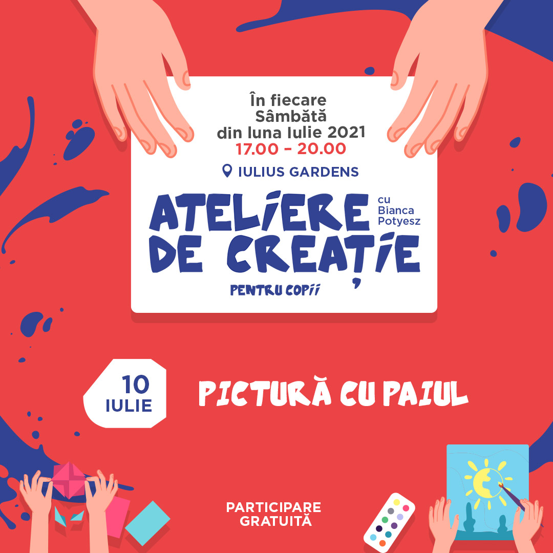 Și copiii primesc doză dublă de distracție! Astfel, sâmbătă, 10 iulie 2021, cei mici sunt așteptați între orele 17.00 – 20.00 la atelierele de creație susținute de Bianca Potyesz pentru a-și lua porția de creativitate. Micii artiști vor înlocui clasica pensulă cu un pai și vor transpune în desene lumea așa cum o văd ei: plină de nuanțe vesele. Dorințele le vor fi îndeplinite duminică, de la ora 11.00, atunci când sunt invitați la spectacolul de teatru de păpuși „Peștișorul de Aur”. Povestea spusă de marionete este un proiect Magic Oz și va avea loc în Iulius Gardens.