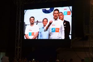 Așa cum ei sunt altceva în muzică, așa și campania vrea sa fie altceva. Nu este exclusă nici o categorie de vârstă în mesajul politicienilor, dar cei mai vizați sunt tinerii. Este generația celor ce au intrat în politica activă după evenimentul tragic de la clubul Colectiv. Sala Olimpia a fost aproape plină de simpatizanți cu tot ce înseamnă recuzită electorală: baloane, pancarte, chiar și vuvuzele. Dar mai ales tricouri cu un slogan deja cunoscut „Fără hoție ajungem departe!”. De fapt cu acest slogan-îndemn citit în mai multe limbi de circulație europeană sau doar bănățeană s-a deschis seria de luări de cuvânt.
