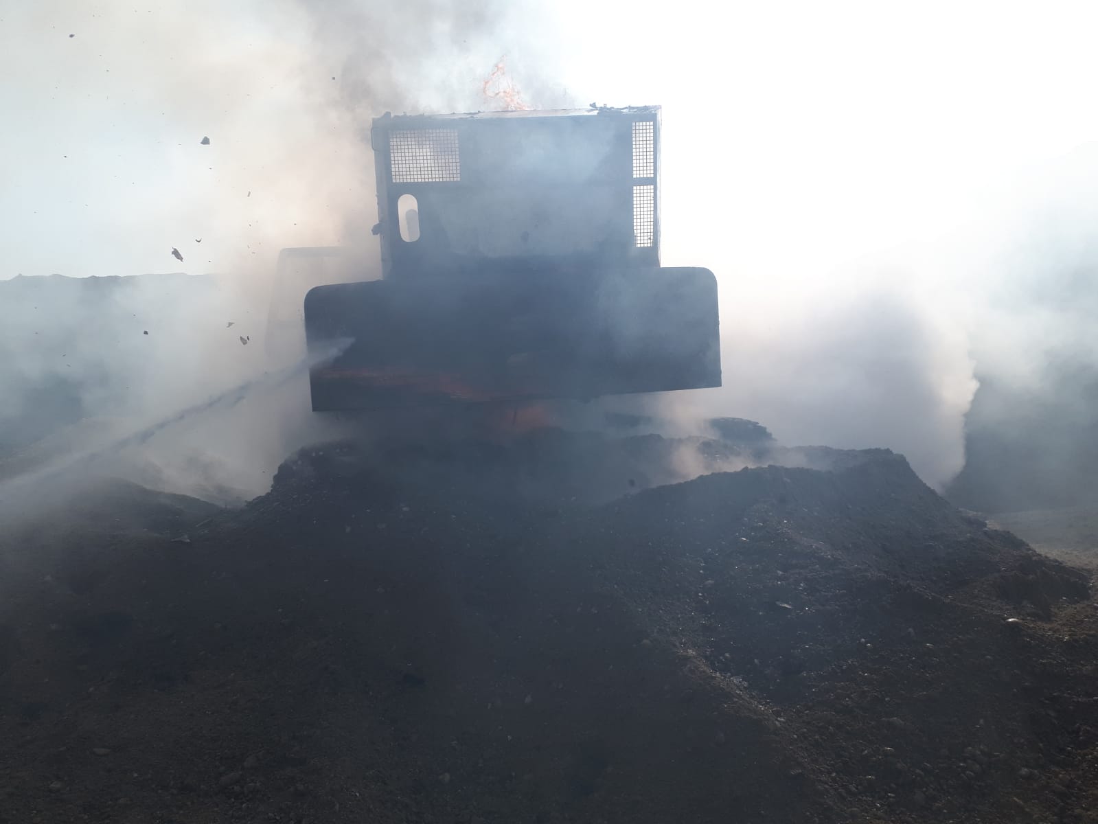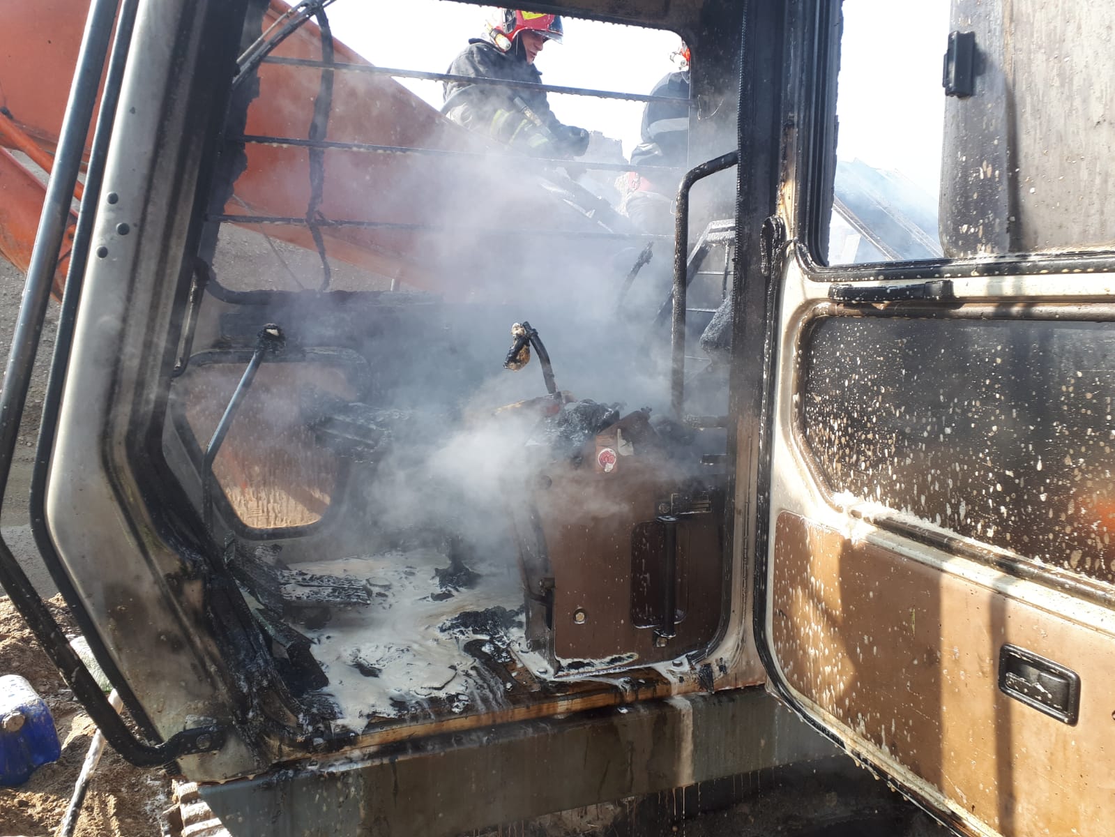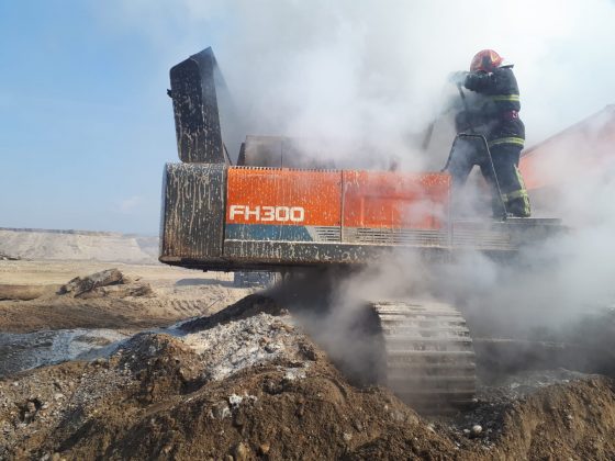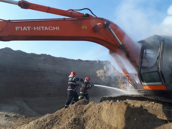 Persoana care manevra utilajul a simțit miros de ars, apoi cabina a fost inundată de un fum dens. Omul a reușit să se autoevacueze și a încercat să lichideze focul cu ajutorul a două stingătoare.