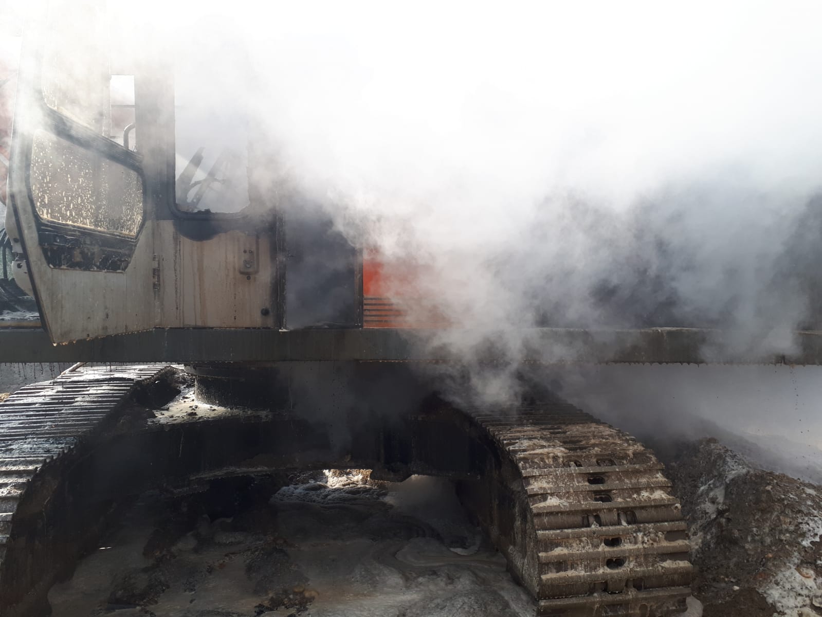 ”A intervenit Detașamentul de Pompieri Arad cu un echipaj de stingere și cinci subofițeri. Din păcate, în momentul sosirii echipajului, incendiul se manifesta violent și generalizat la excavator. Incendiul a fost stins în aproximativ 20 de minute, utilajul arzând în proporție de 80%”, au transmis pompierii.