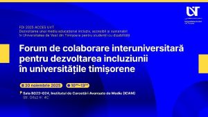 Rectorul UVT, Marilen Gabriel Pirtea: „Forumul de colaborare interuniversitară organizat la UVT a reunit reprezentanți ai centrelor de sprijin pentru integrarea studenților cu dizabilități din universitățile timișorene membre ATU, alături de cadre didactice universitare interesate de promovarea incluziunii în mediul academic. UVT promovează în cadrul ATU, prin această temă, construirea unui mediu universitar mai accesibil, mai empatic și mai echitabil.”