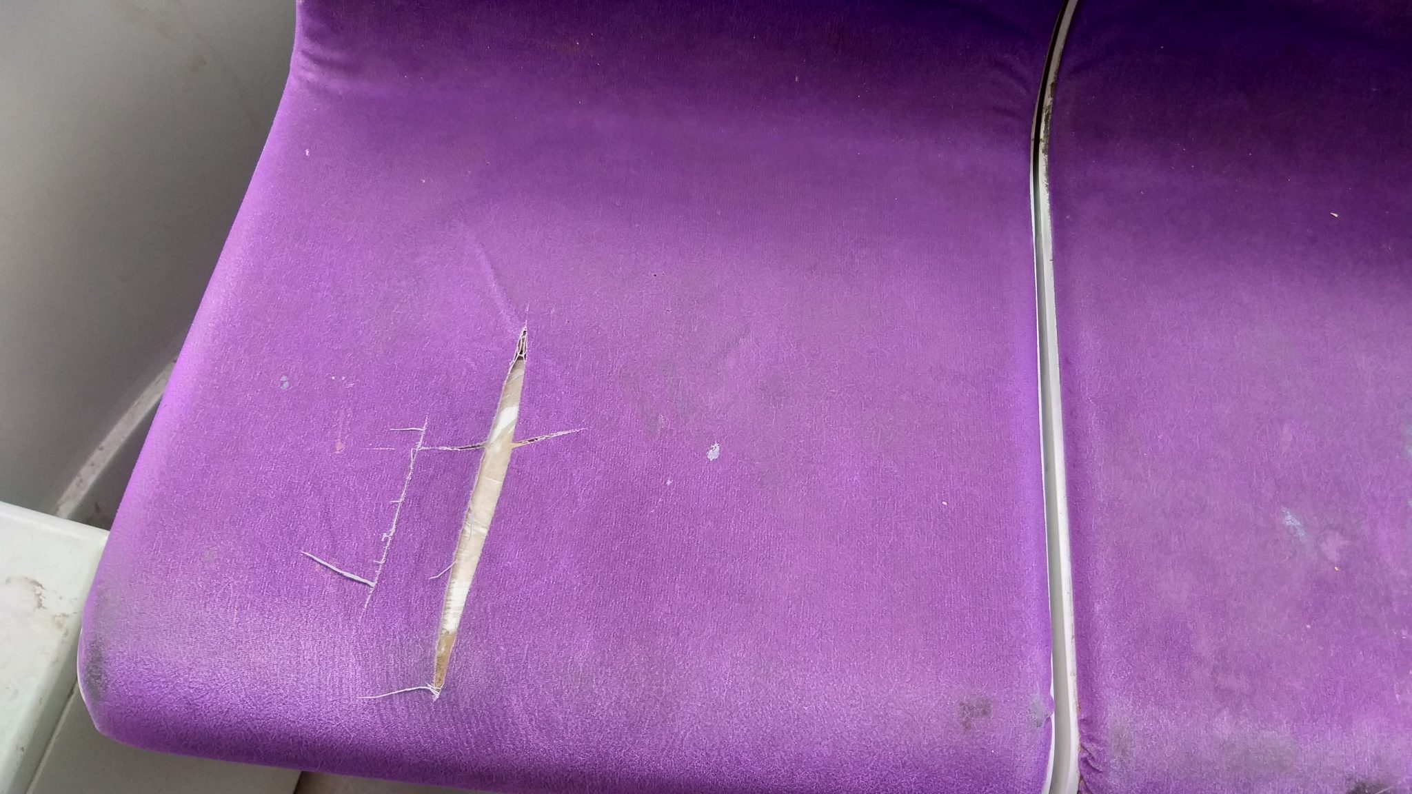 Cele mai noi victime ale vandalilor sunt scaunele. În generozitatea lor autoritățile au crezut că e bine ca acestea să fie tapițate cu un pluș confortabil. Greșeală! Acum au golanii unde să-și exerseze bricegele și alte obiecte tăioase. Tot mai multe tapițerii sunt brăzdate cu cuțitul. Doar așa de distracție. Ori poate au alte simpații fotbalistice și fac urât când văd culoarea violet? Se știe că au puține gânduri, dar sunt iuți la mânie și imediat scot cuțitul să se răzbune pe stofa scaunelor.