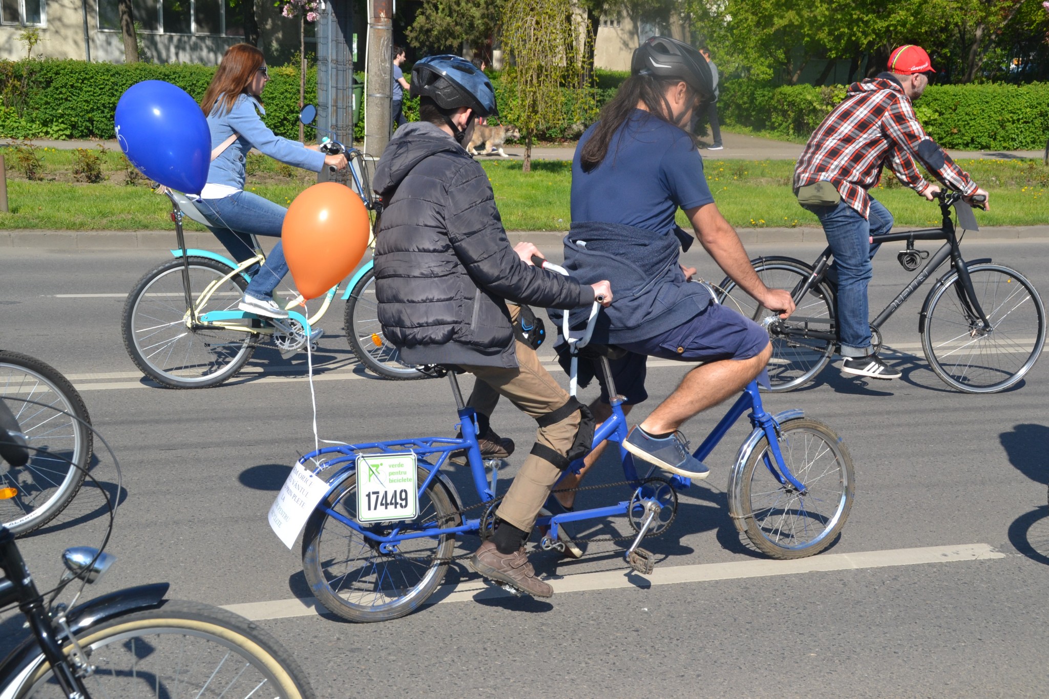 După o oră de veselie, la 11 fix s-a dat startul. A fost o adevărată inundație de biciclete, baloane colorate și bucurie. În față erau, ca de obicei, lucrătorii de la circulație, pentru a tempera vitejii vitezomani sau a deschide drumul în fața mașinilor. La aceștia s-au adăugat și numeroși voluntari ce cu fluierele lor încercau să păstreze ordinea în coloană. Nici cei mai mici nu au lipsit. Au fost şi cărați de părinți, dar unii erau autonomi, pe propriile lor vehicule.