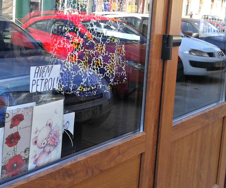 Şi nu oriunde, ci la o mercerie! Printre nasturi şi fermoare, de ce să nu luăm şi o… canistră de petrol.