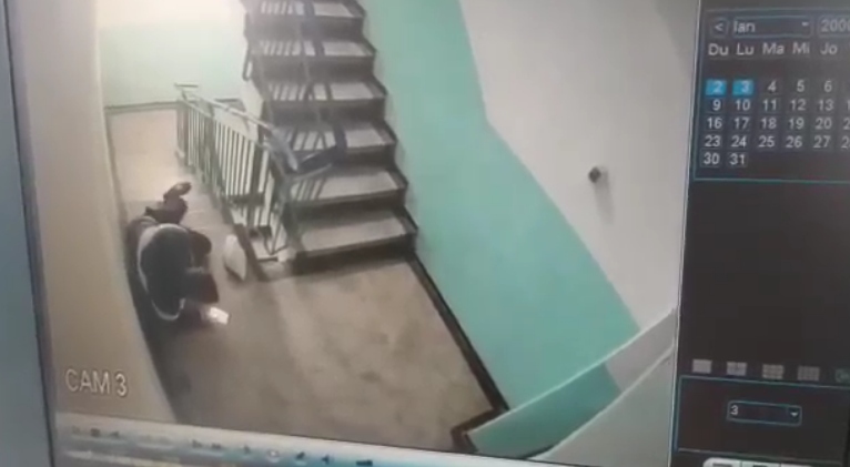 Pe imaginile de pe camerele de supraveghere se vede cum acesta soseşte din oraş , urcă câteva trepe după care îşi aruncă portofelul pe jos, scoate telefonul din buzunar iar apoi se tăvăleşte pe jos ca şi cum ar fi fost atacat.