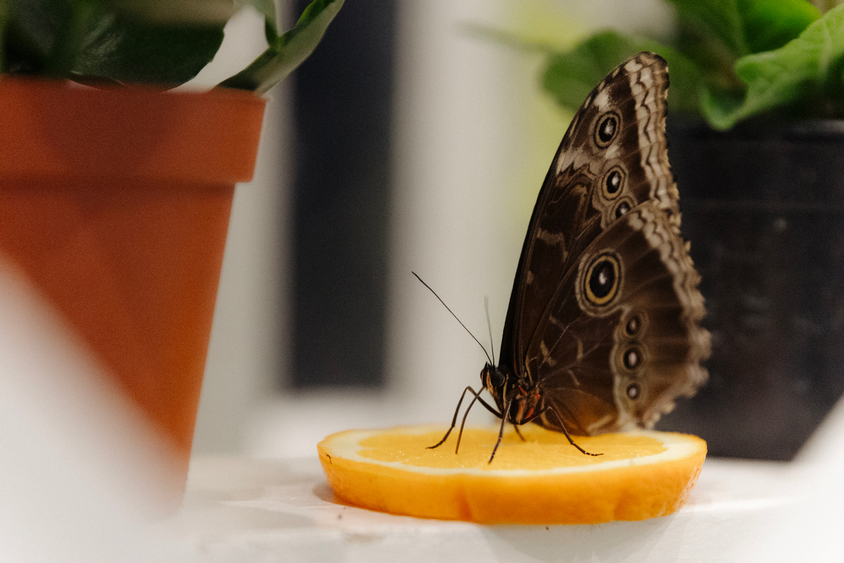 Fluturii se află într-o seră de șase metri lungime, special amenajată cu plante exotice și elemente decorative, unde aceștia zboară liberi printre vizitatori. Expoziția oferă cadrul ideal pentru a observa și admira în detaliu coloritul spectaculos al fiecărui exemplar.