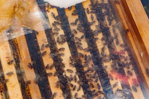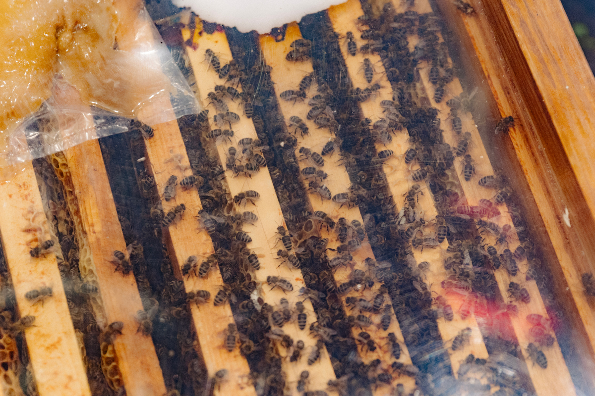 Expoziția include și peste 4.000 de albine, expuse în stupi transparenți, care permit participanților să vadă fagurii și modul în care albinele își îngrijesc regina.