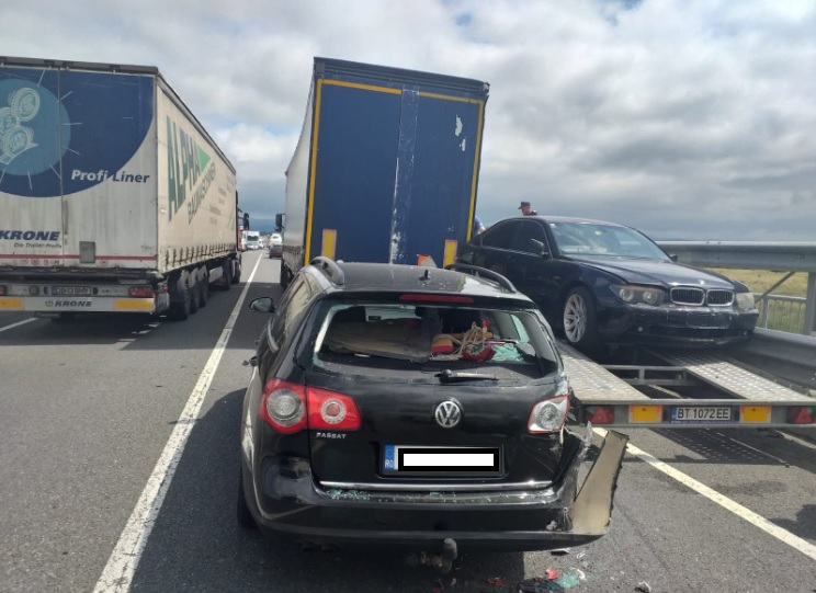 Mai multe vehicule au fost implicate într-un accident de circulație petrecut în această după-amiază pe centura municipiului Caransebeș, pe un pod peste râul Timiș. Este vorba despre un microbuz cu numere de Bulgaria, un autoturism și un TIR. Microbuzul avea și o remorcă pe care transporta două mașini.
