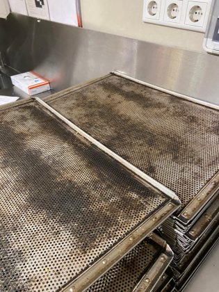 • utilizarea unor cuptoare, la raioanele de panificație-patiserie, neigienizate corespunzător și a unor tăvi arse