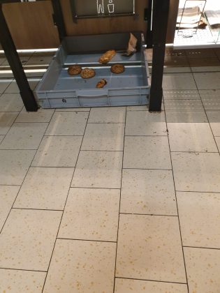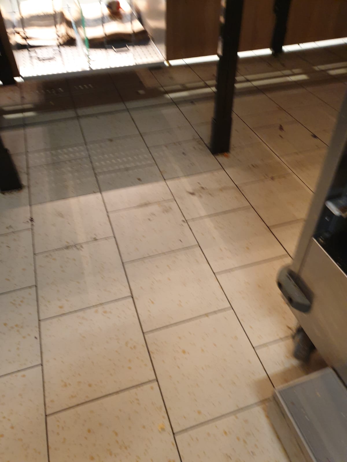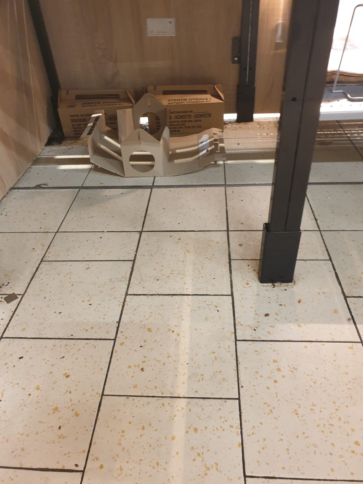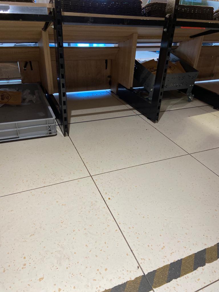 • existența pavimentului neigienizat și a unor rafturi murdare, în zona de comercializare