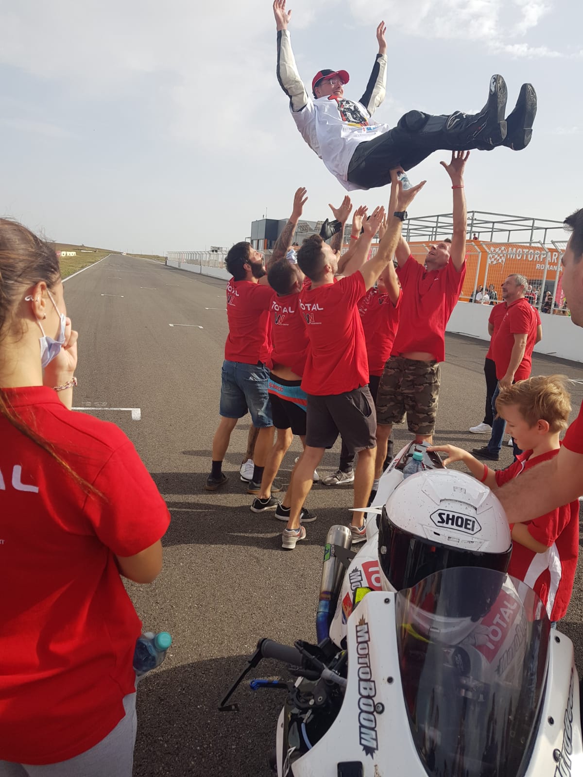 Tânărul pilot timișorean s-a impus în week-end-ul 3-4 octombrie în a V-a etapă de MotoRC by Rompetrol, pe circuitul MotorPark România. Cu 120 de puncte acumulate în clasamentul general, Vlad are deja titlul de campion MotoRC 2020. Deși a fost penultima etapă a concursului, riderul timișorean nu mai poate fi întrecut în clasamentul general al clasei Stock 1000 de vreun alt concurent!