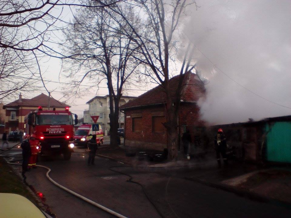 S-a dat alarma, joi dimineţa, pe Calea Bogdăneştilor! Anexa unei case, unde funcţiona o vulcanizare, a luat foc, fumul des acoperind întreaga zonă. Trei autospeciale a pompierilor de la ISU Banat au intervenit de urgenţă.
