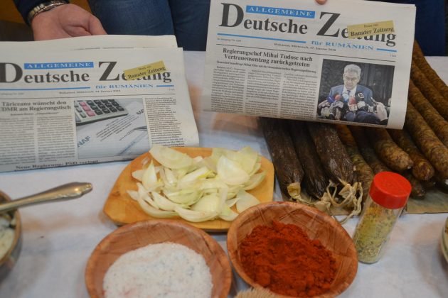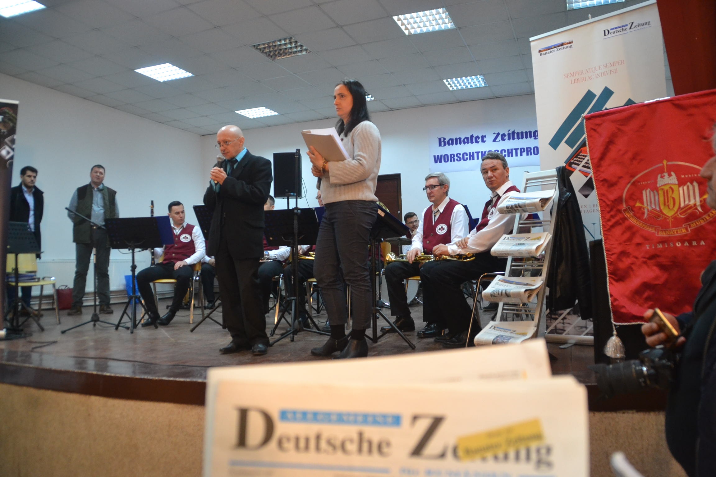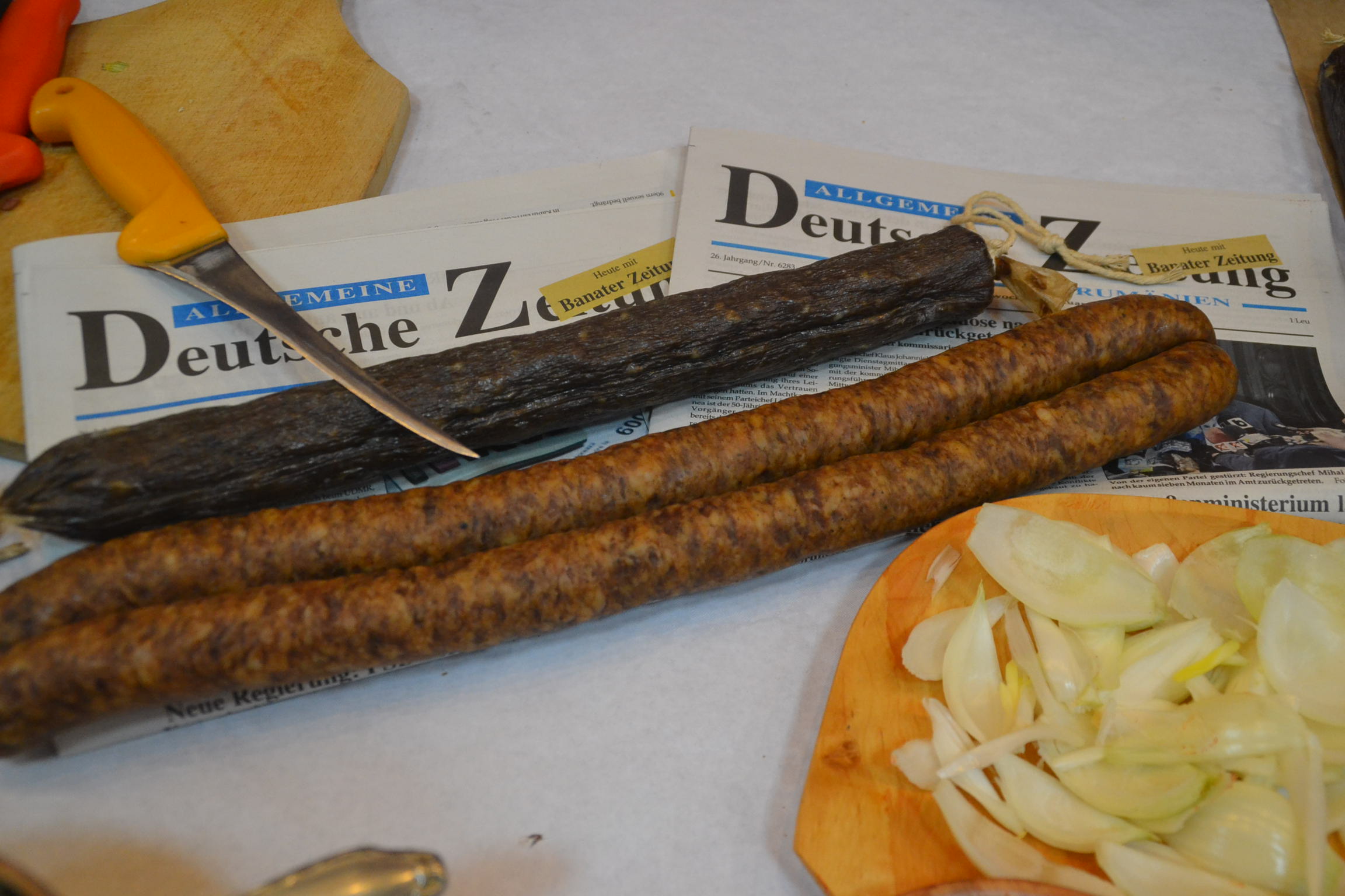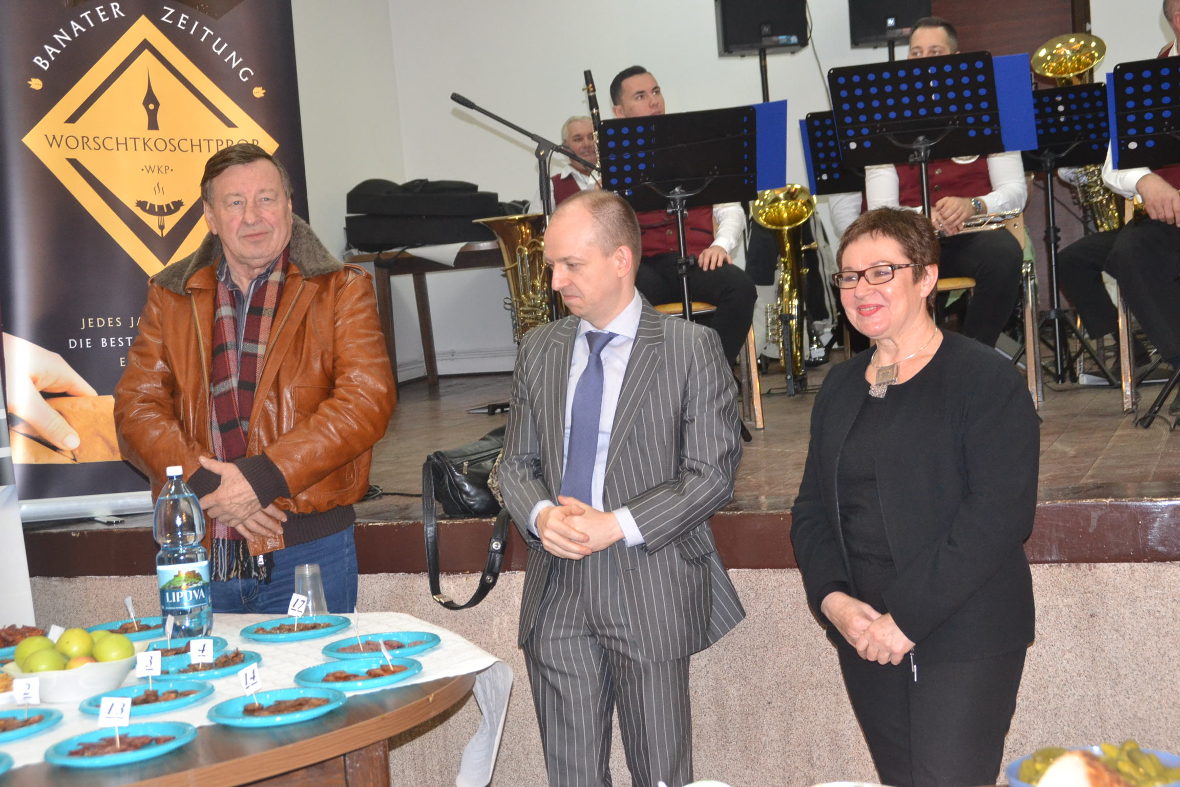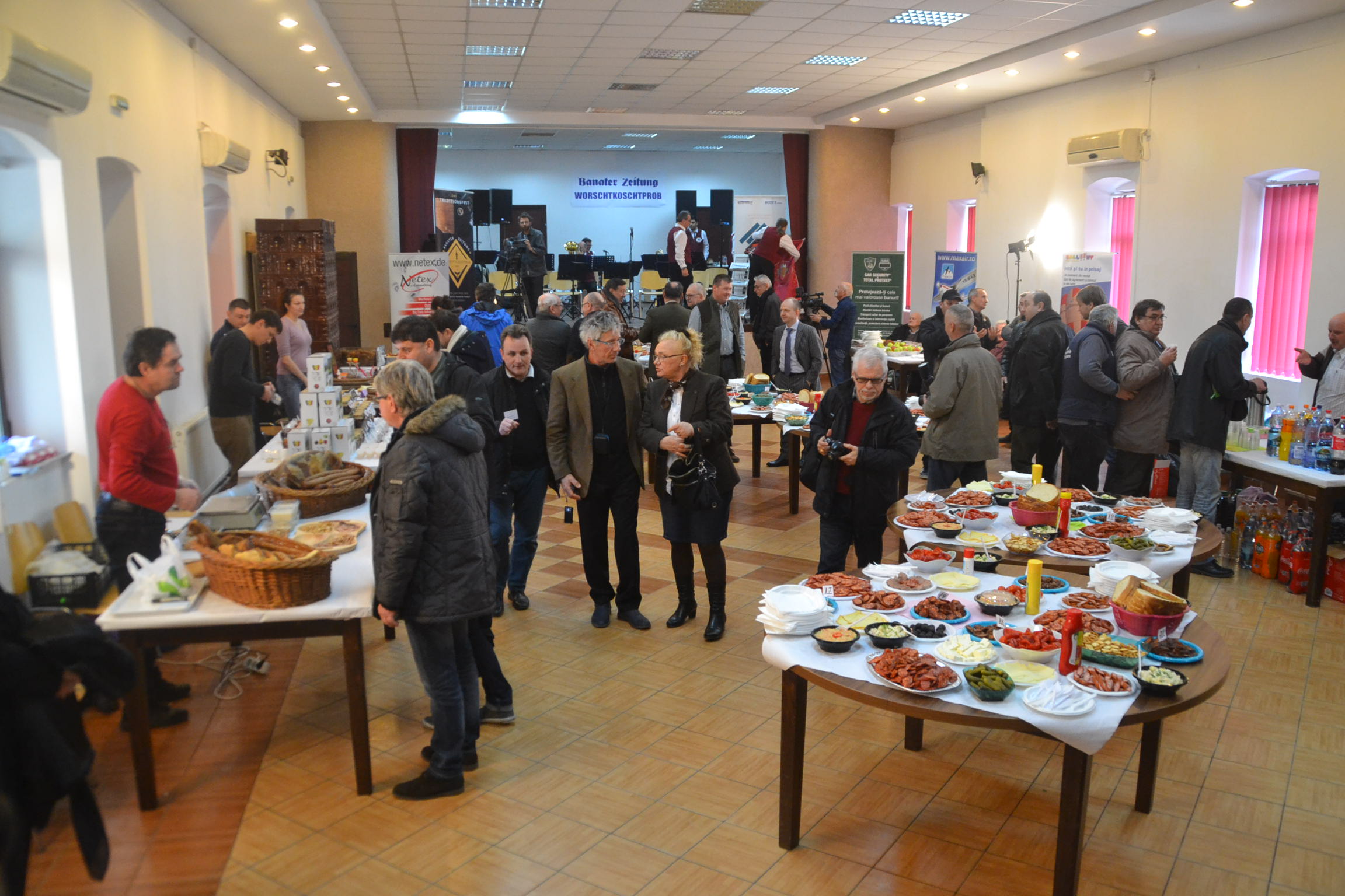 Redactorul șef Siegfied Thiel al săptămânalului Banater Zeitung și colega dânsului Ștefana Ciortea Neamțiu au fost amfitrionii întâlnirii de azi. Au prezentat pe scurt cam cât de serioasă este treaba cu cârnații și că, de fapt, totul este bucuria de a fi în mijlocul cititorilor ziarului. Acesta este și motivul principal pentru care, de câțiva ani, „degustarea” a devenit itinerantă și au fost ediții în județele Arad și Caraș-Severin nu doar cele obișnuit de la Timișoara.
