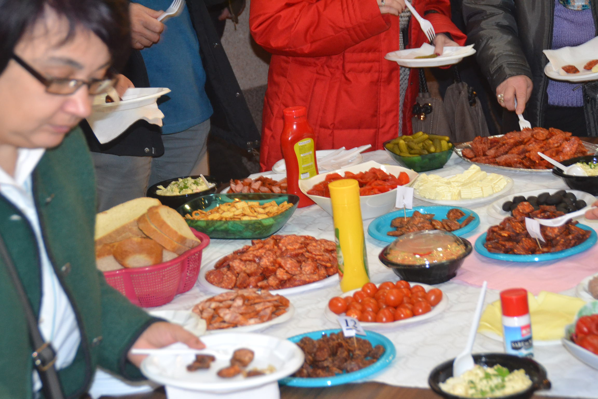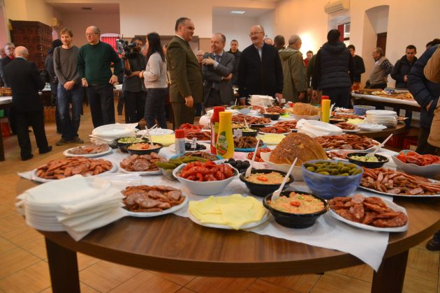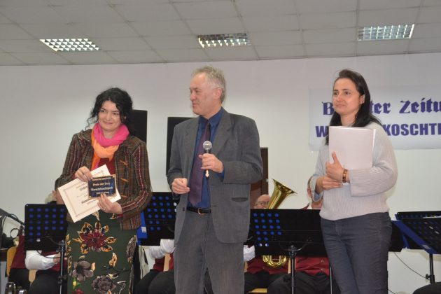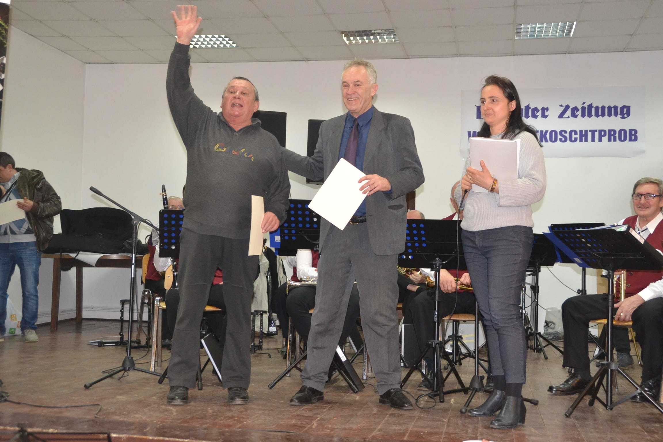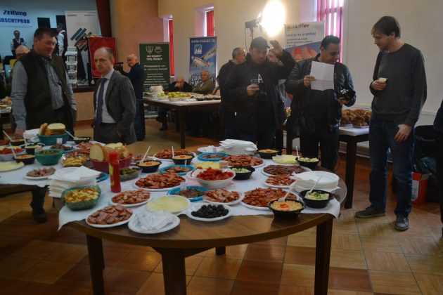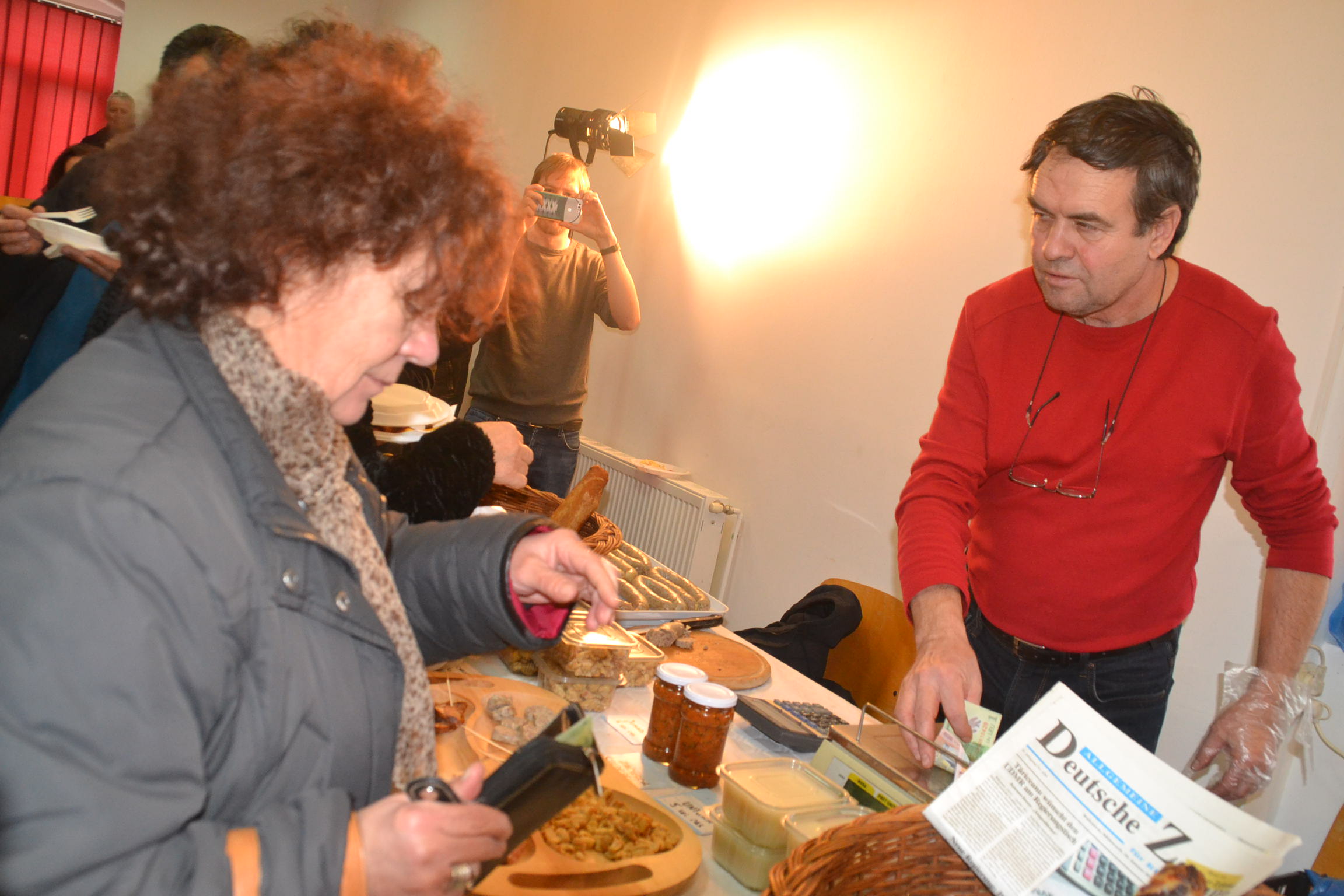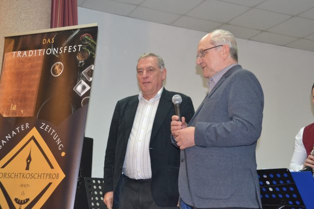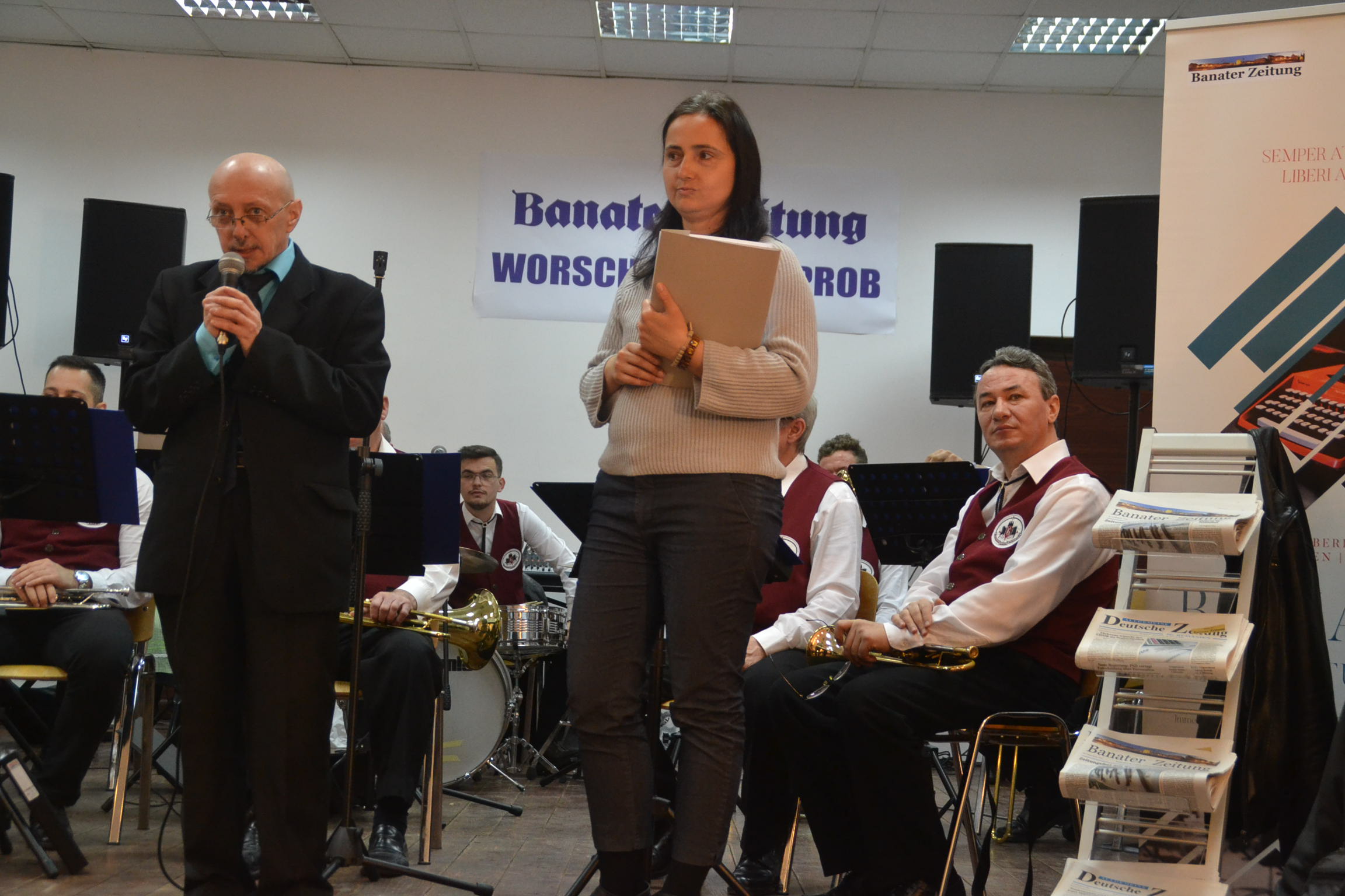 Redactorul șef Siegfied Thiel al săptămânalului Banater Zeitung și colega dânsului Ștefana Ciortea Neamțiu au fost amfitrionii întâlnirii de azi. Au prezentat pe scurt cam cât de serioasă este treaba cu cârnații și că, de fapt, totul este bucuria de a fi în mijlocul cititorilor ziarului. Acesta este și motivul principal pentru care, de câțiva ani, „degustarea” a devenit itinerantă și au fost ediții în județele Arad și Caraș-Severin nu doar cele obișnuit de la Timișoara.